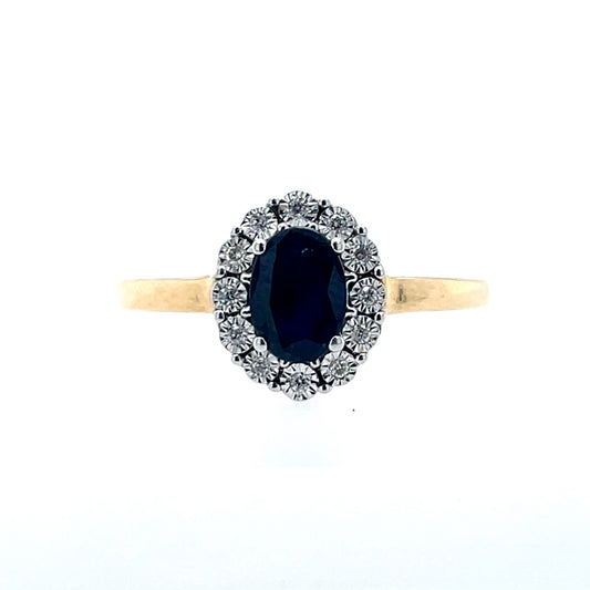9ct Gold Sapphire & Diamond Cluster Ring GRS133