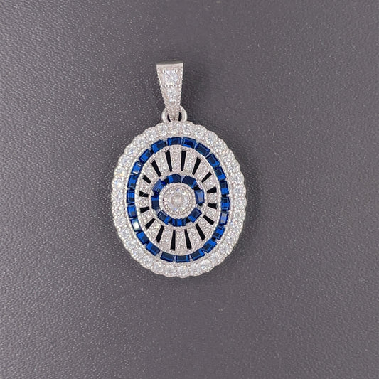 Sterling Silver Sapphire CZ Oval Deco-style Pendant ED897