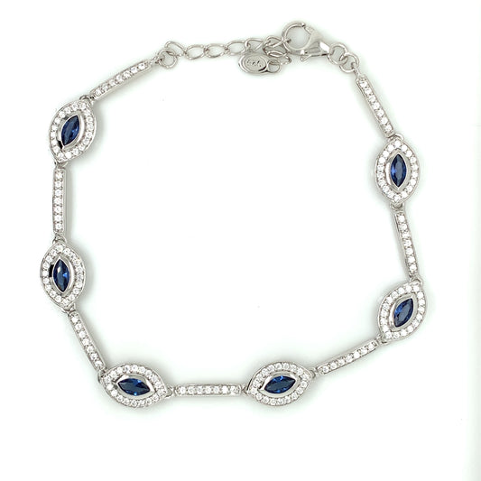 Sterling Silver Sapphire CZ Marquise Bracelet SB8795/S
