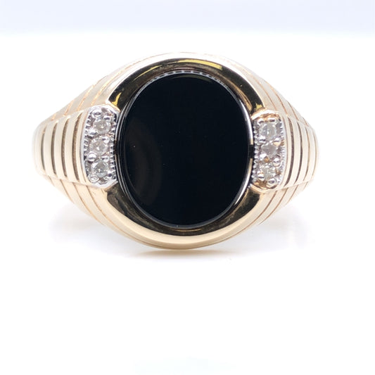 9ct Gold Gents Oval Onyx & Diamond Ring GR121