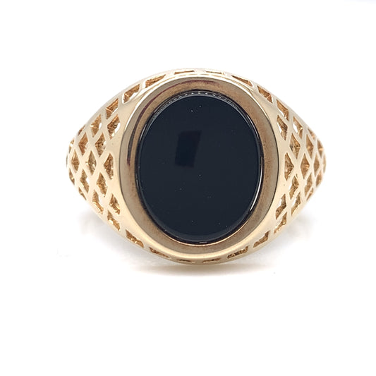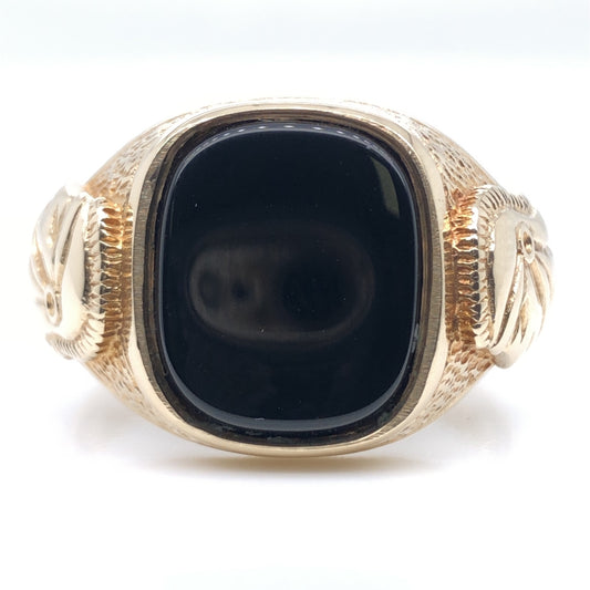 9ct Gold Gents Cushion Onyx Centurion Shoulders Ring GR114