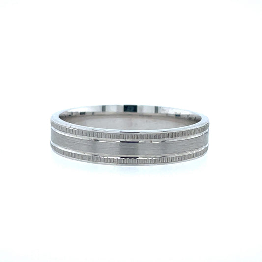 Sterling Silver Mens 5mm Flat Millgrain Wedding Ring SR44