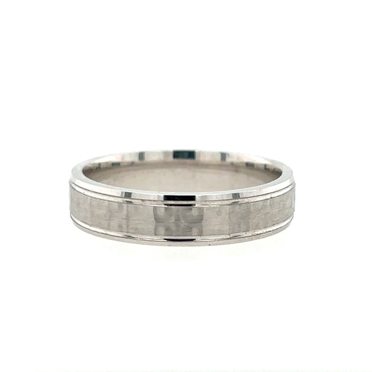 Sterling Silver Mens 5mm Flat Hammered Wedding Ring SR46