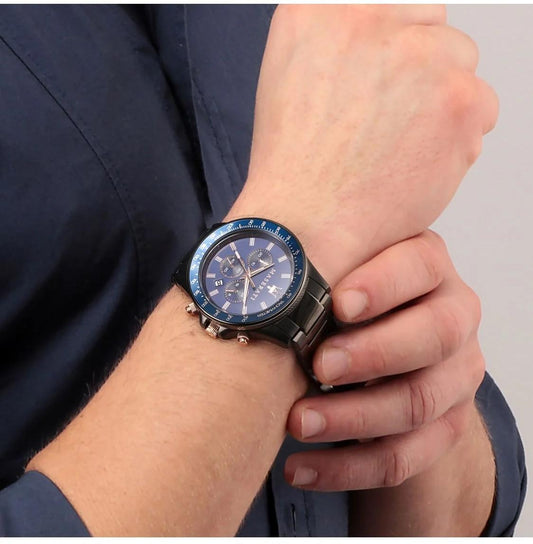 LORUS QUARTZ STAINLESS STEEL BLACK CHRONOGRAPH WATCH RM359GX9