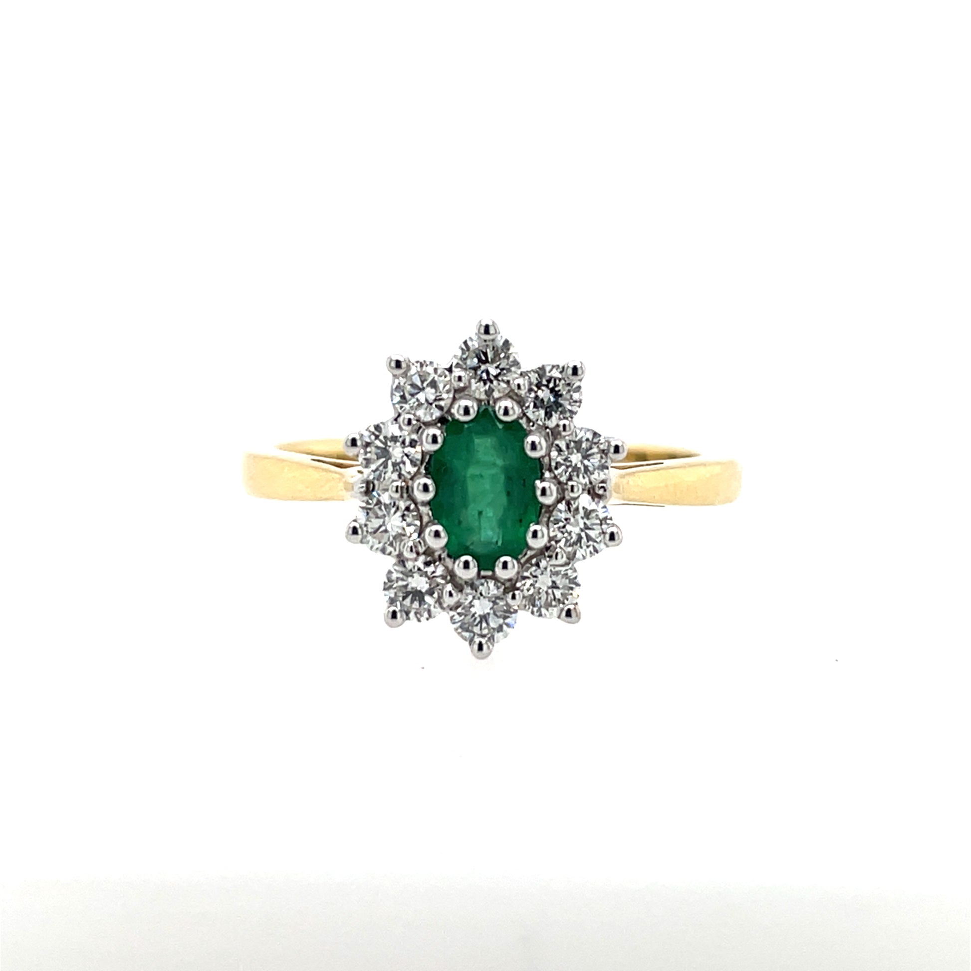 18ct Gold Emerald & Diamond Oval Cluster Ring