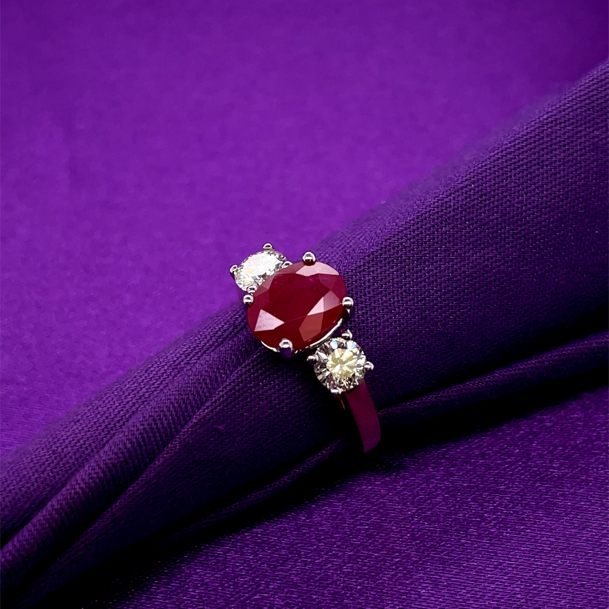 Ruby 9 x 7mm, 2.25ct approx. , diamonds 0.75ct.