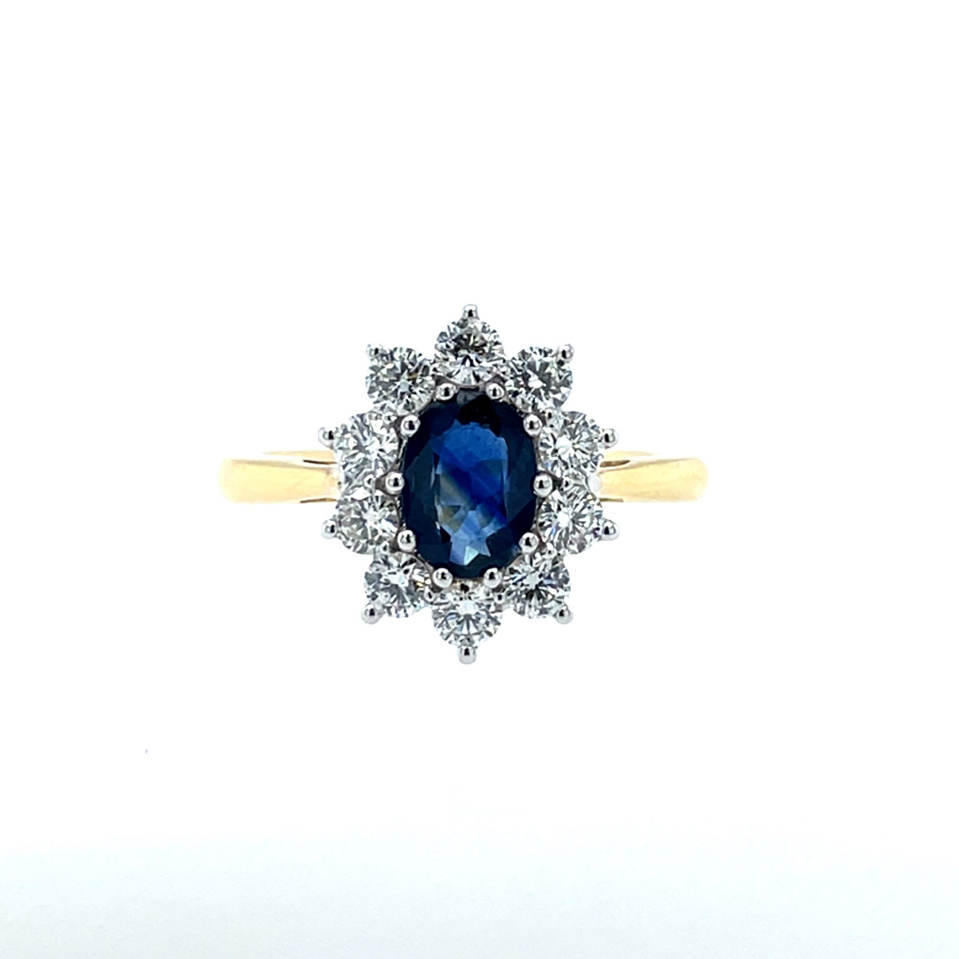 18ct Gold Sapphire & Diamond Oval Cluster Ring