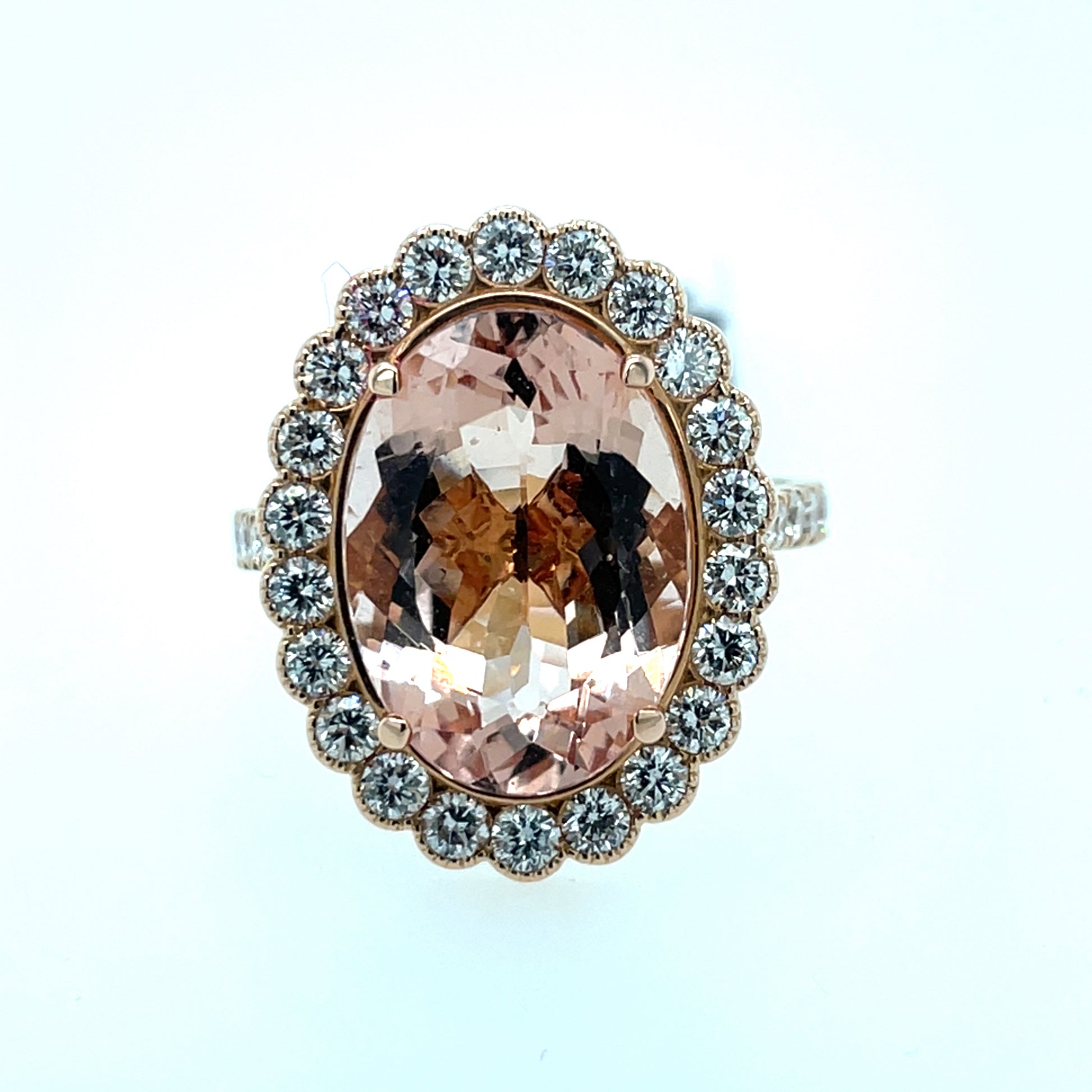 18ct Rose Gold Morganite & Diamond Oval Halo Ring GRX224