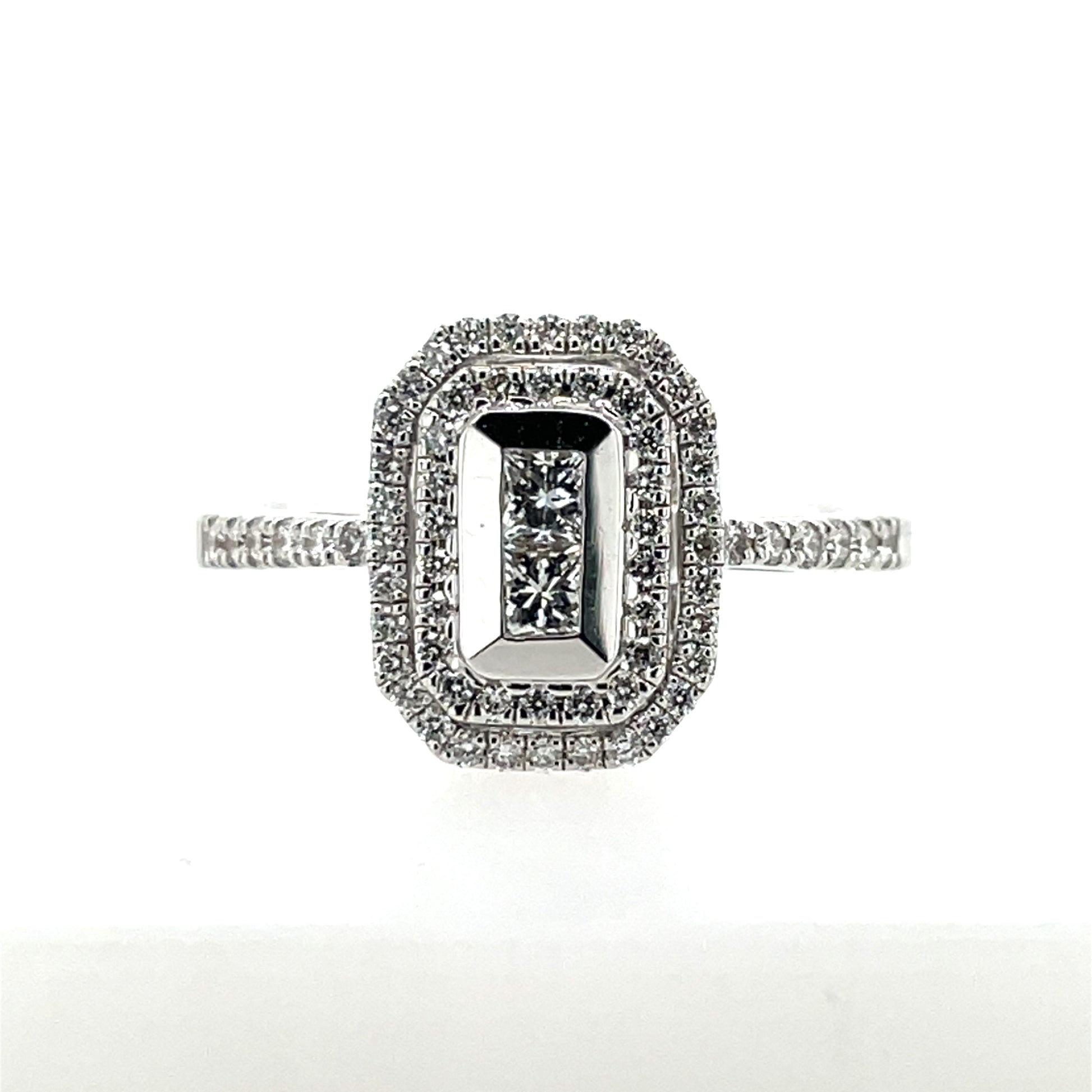 18ct White Gold Diamond Princess Double Halo 0.50ct Engagement Ring.