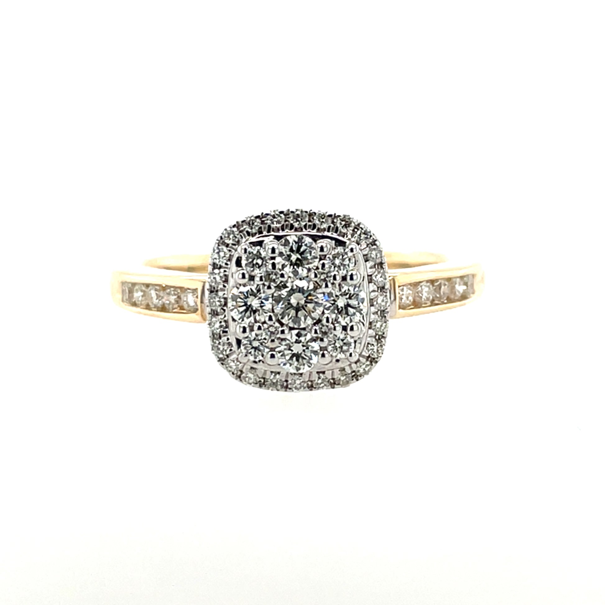 9ct Gold 0.50ct Diamond Cushion Halo Ring Z234