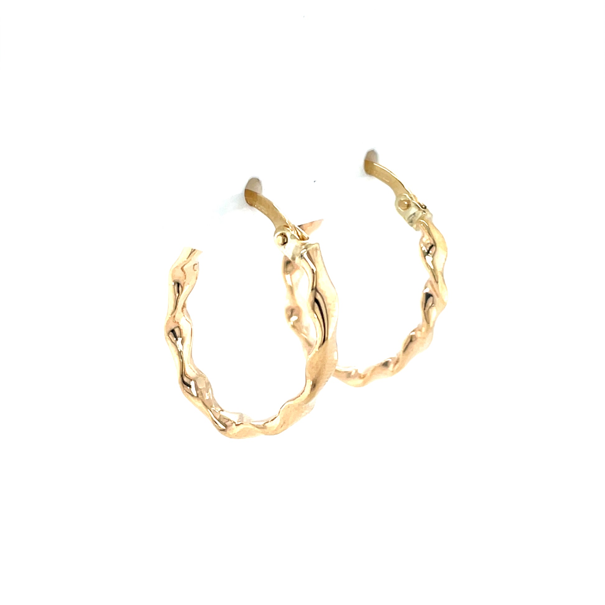9ct Gold 15mm Twisted Hoop Earrings.