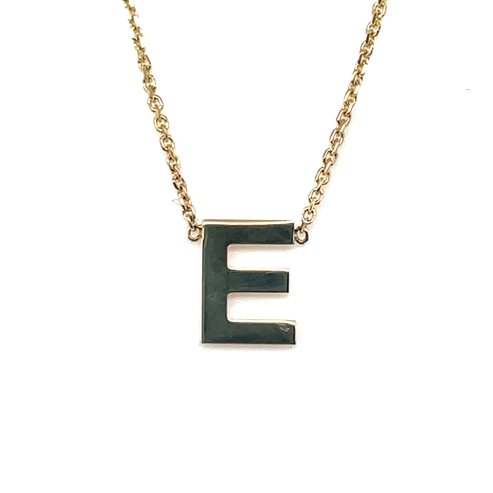 9ct Gold 7mm Block Initial on chain 45cm approx.