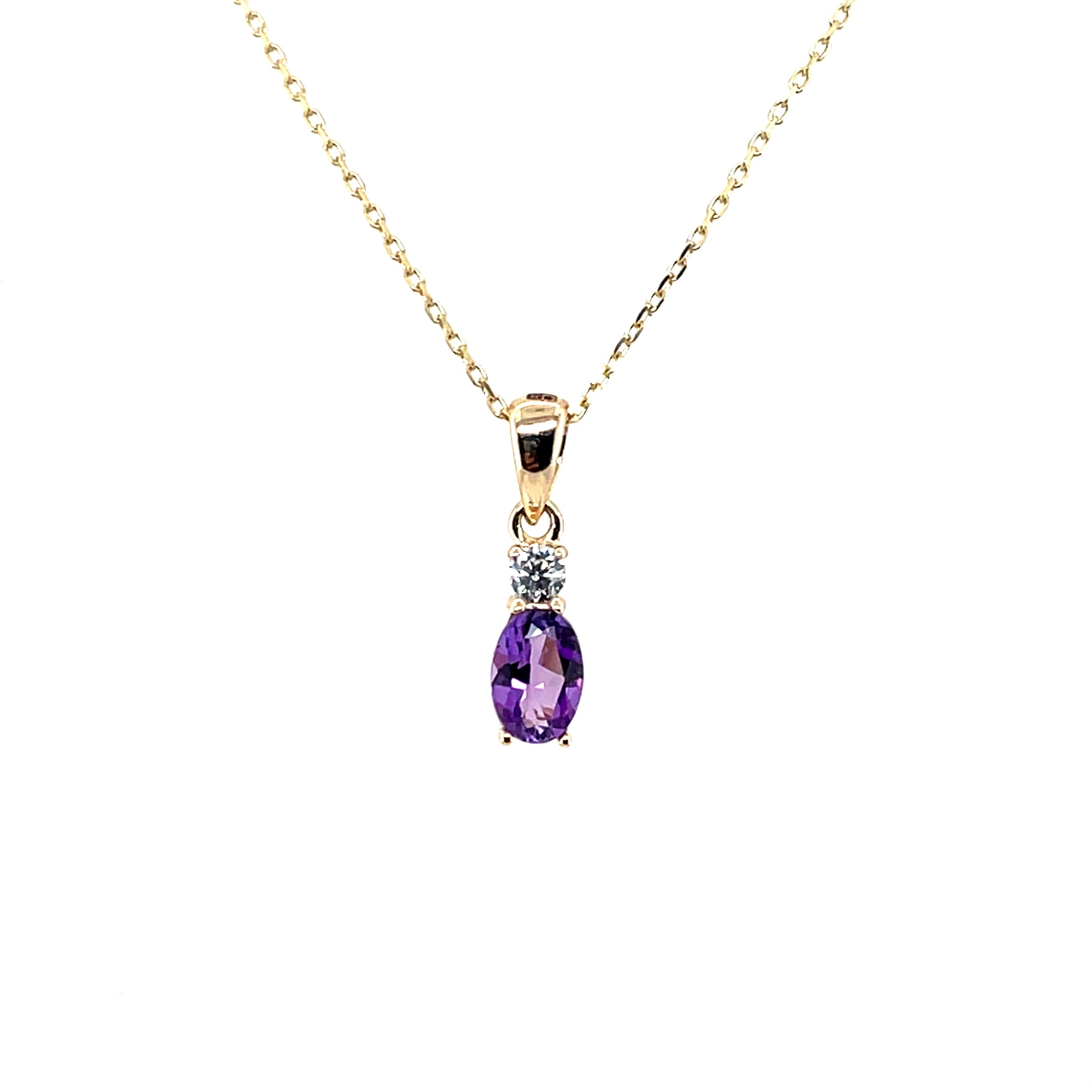 9ct Gold Amethyst & CZ Pendant on 16/18 inch chain.