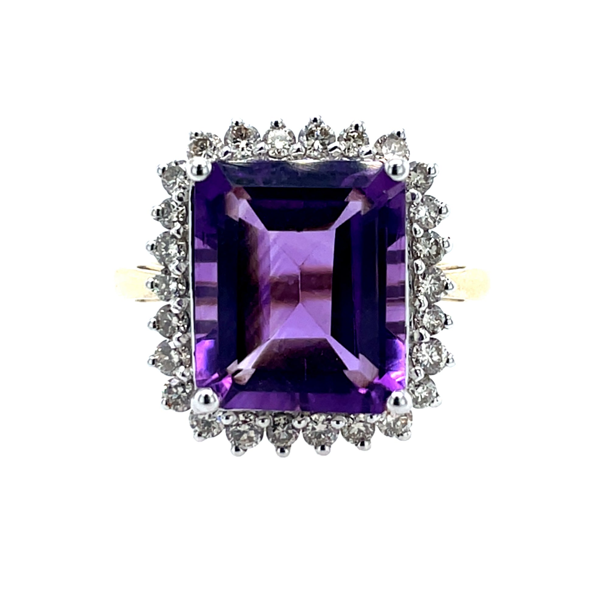 9ct Gold Amethyst & Diamond Cocktail Ring GRX230