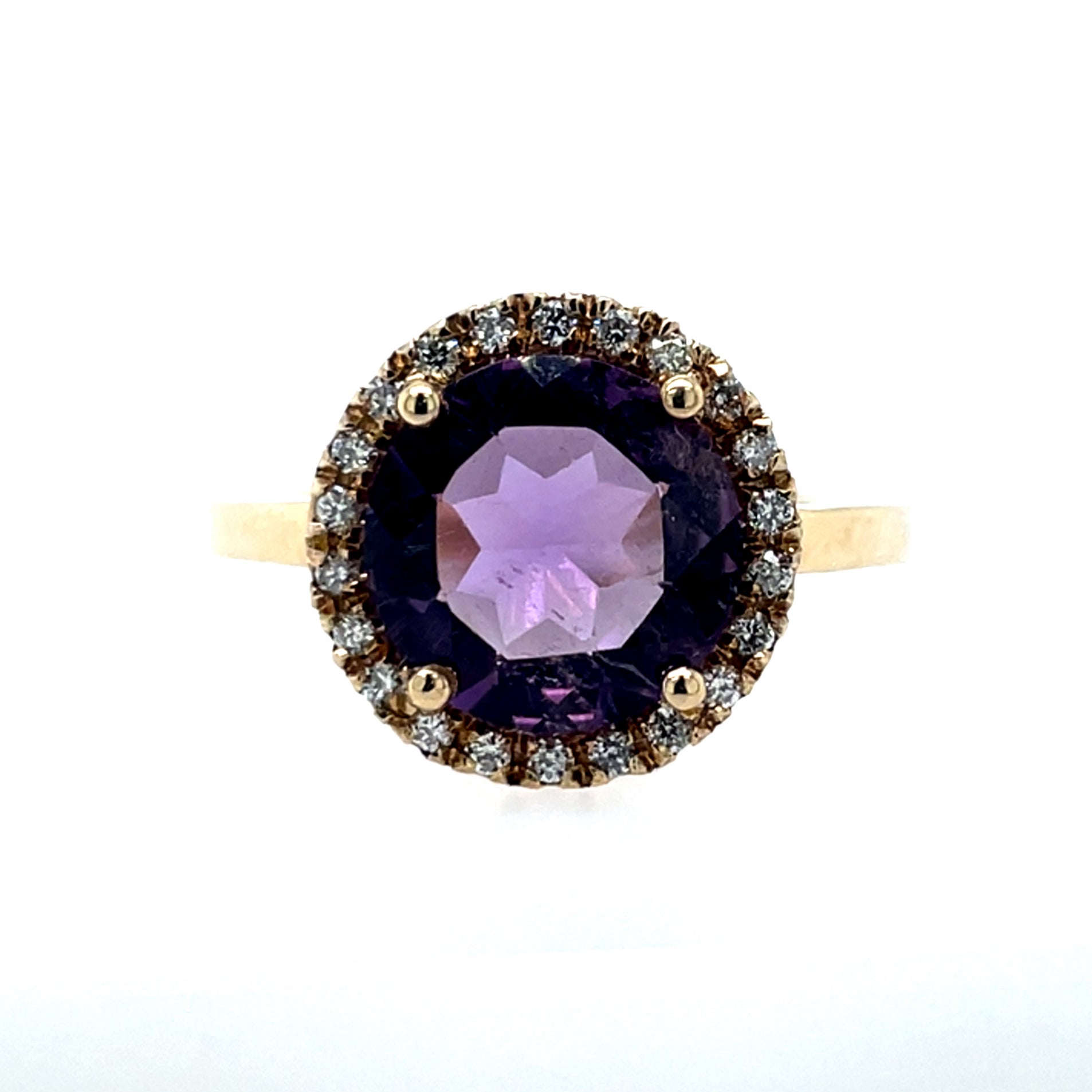 9ct Gold Amethyst & Diamond Halo Ring GRX218