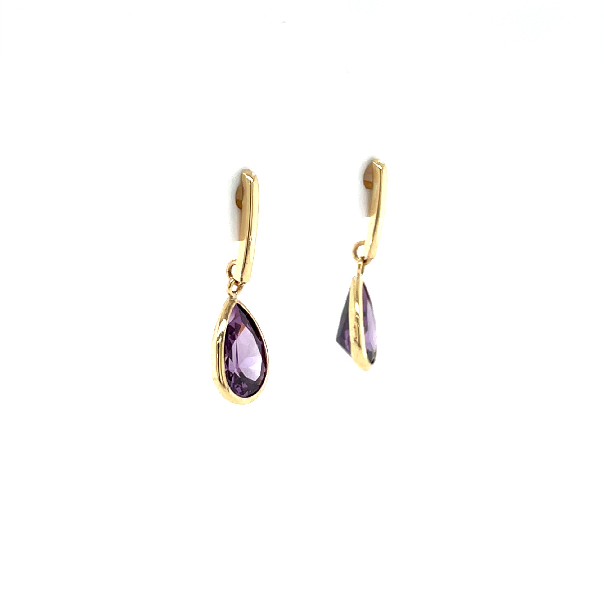 9ct Gold Amethyst Drop Earrings, stud fitting.