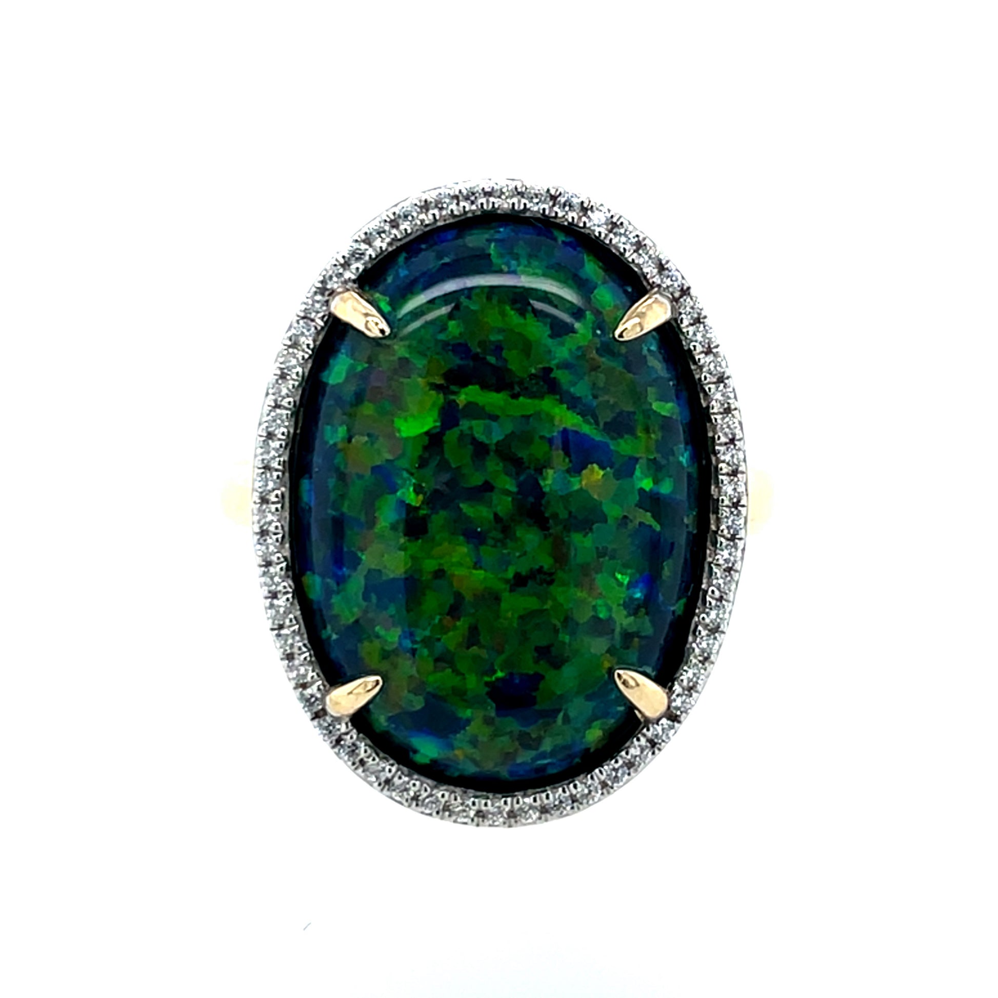 9ct Gold Created Black Opal & CZ Oval Halo RingGRL39