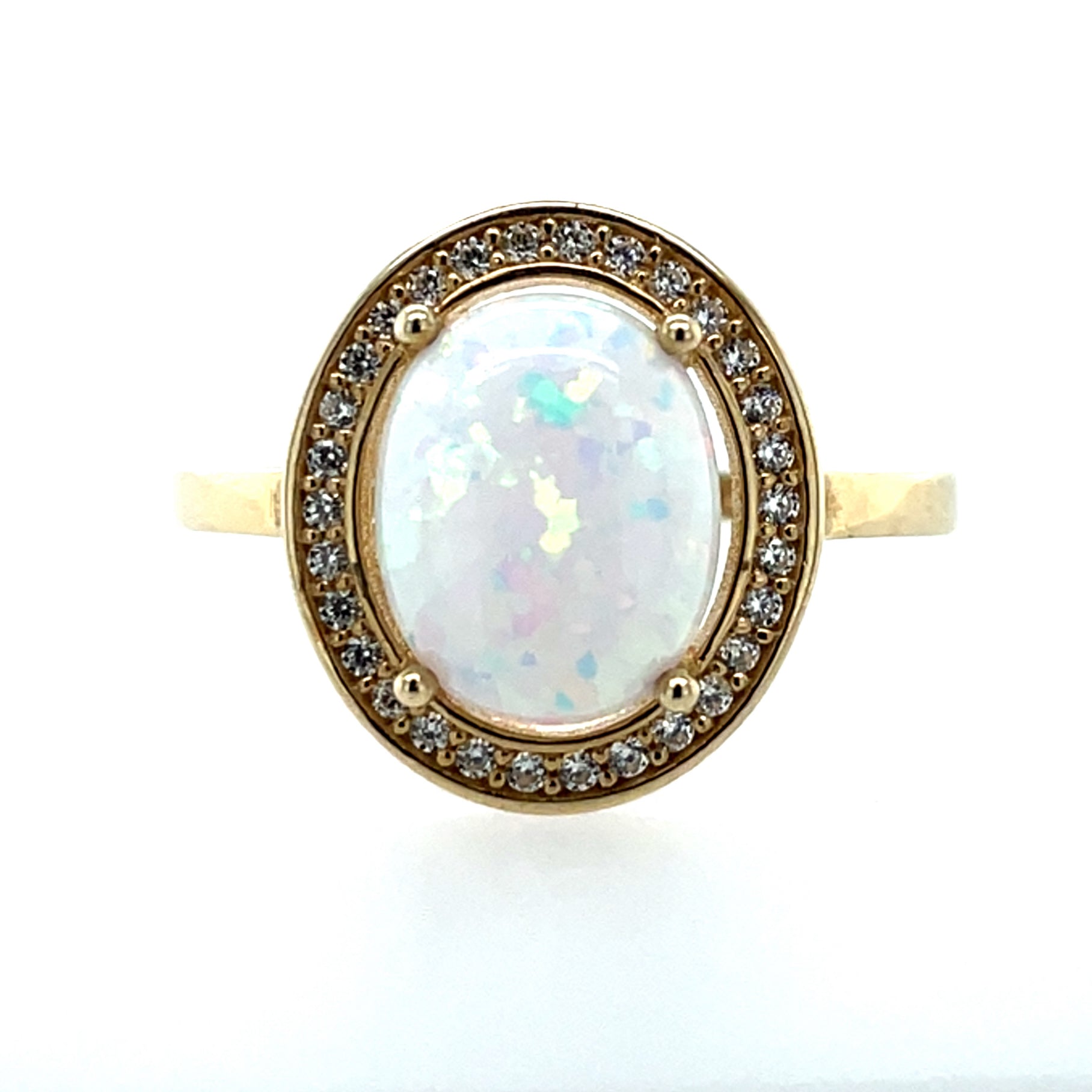 9ct Gold Created Opal & CZ Cluster Ring GRL77