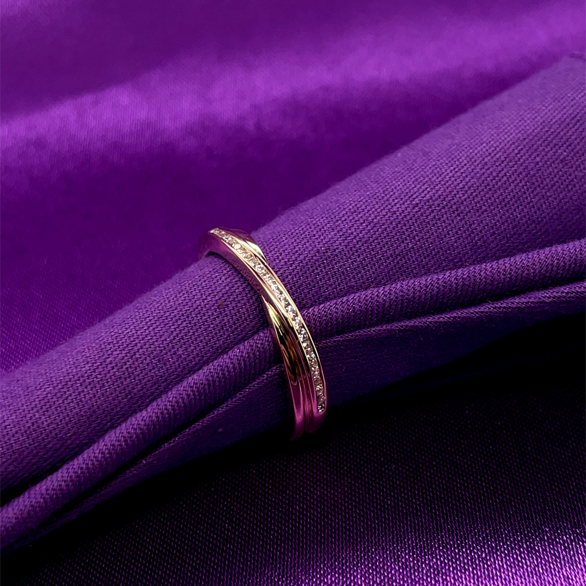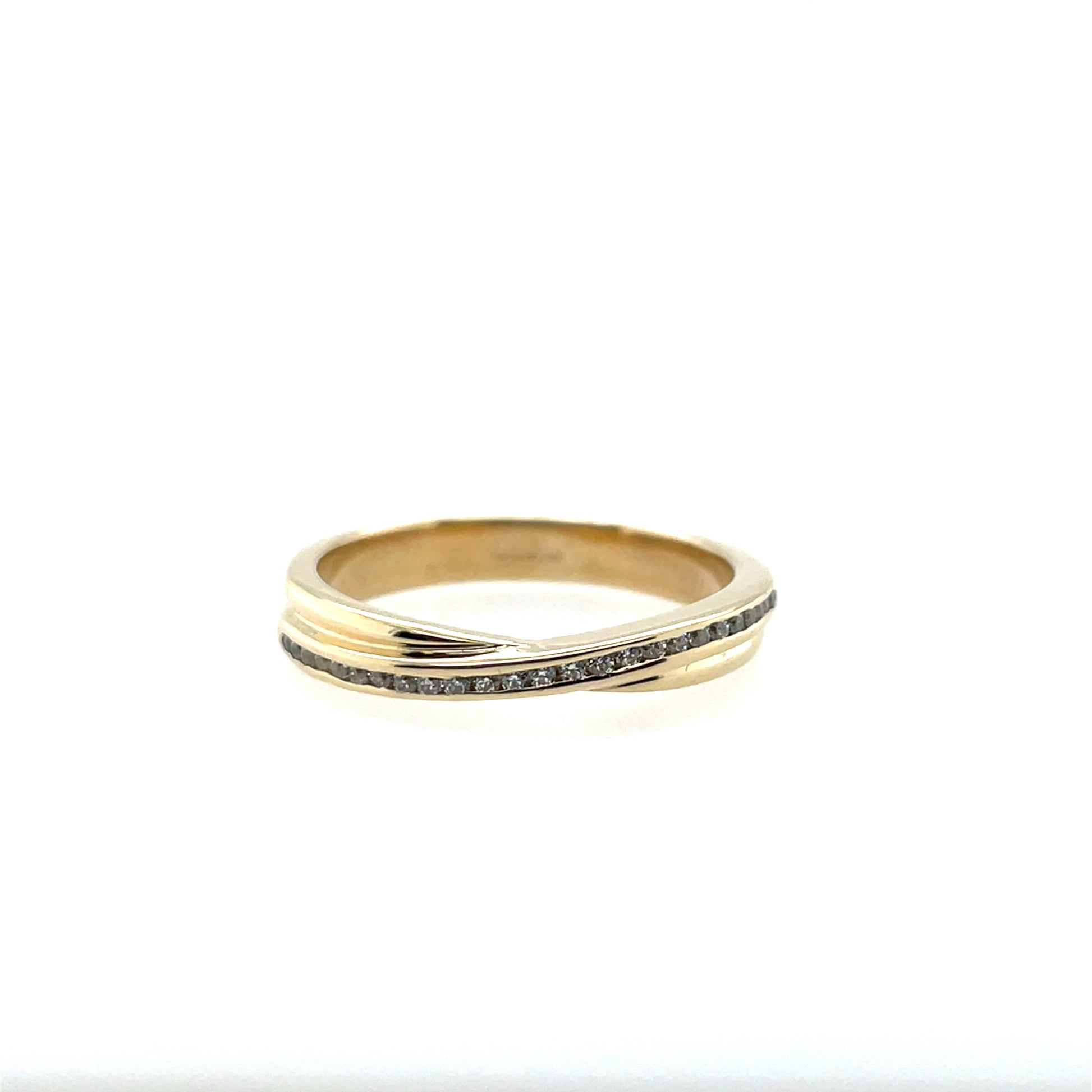 9ct Gold CZ Crossover Eternity Ring with solid shank.