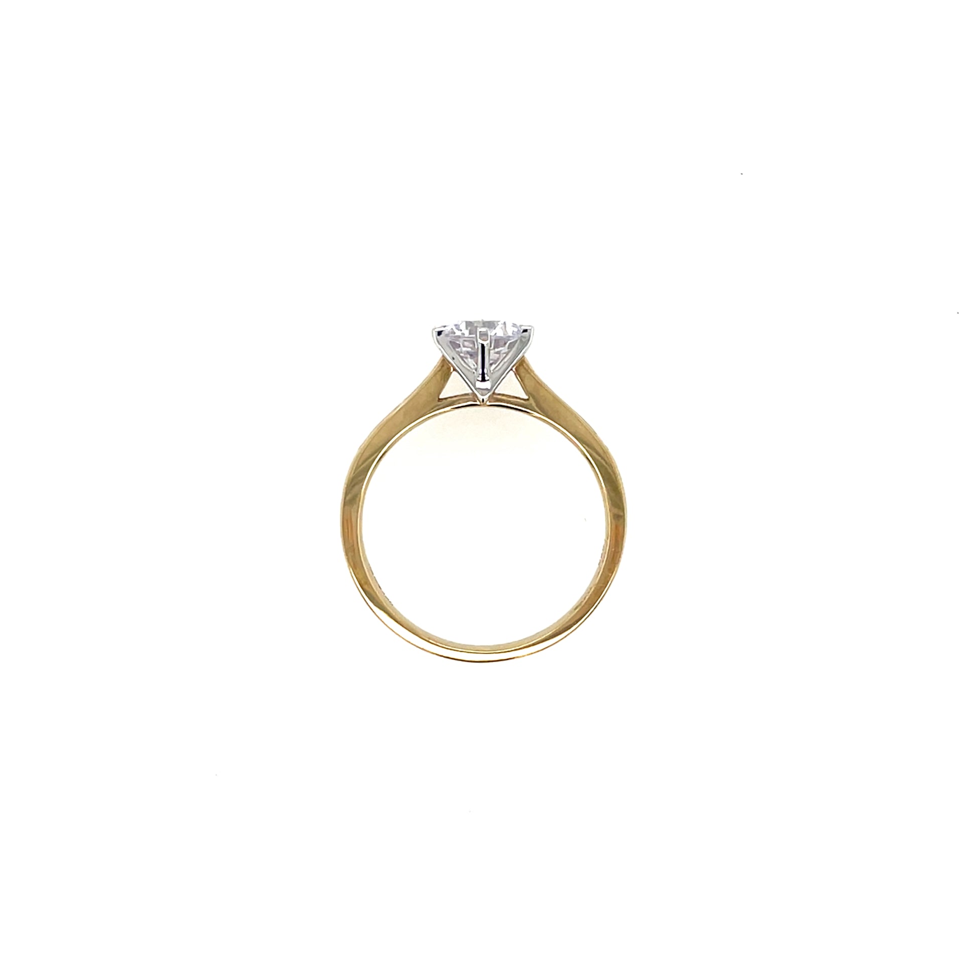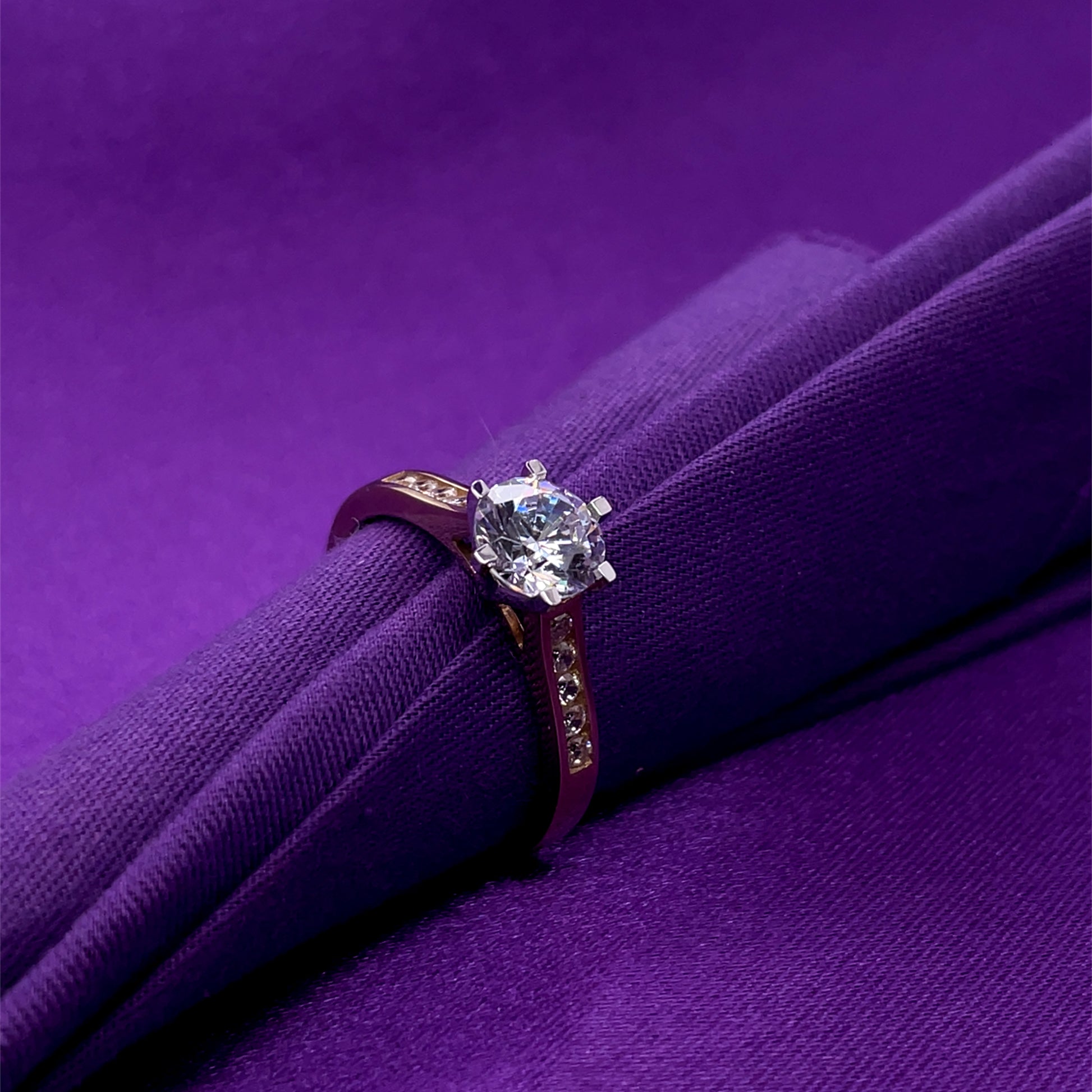 9ct Gold CZ Solitaire Ring, six-claw setting with tapered channel-set shoulders.