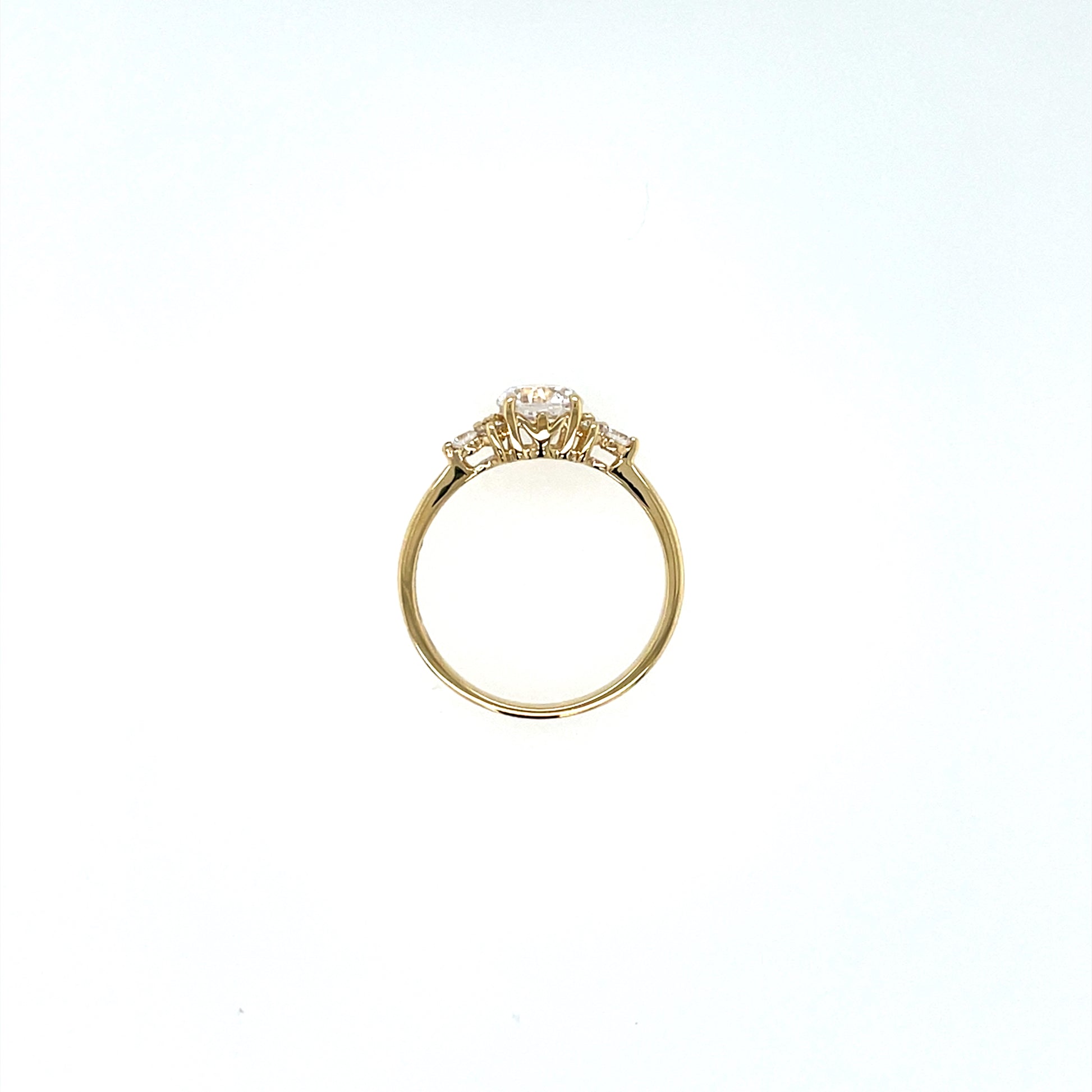 9ct Gold CZ Solitaire Ring with CZ sides & polished shoulders.