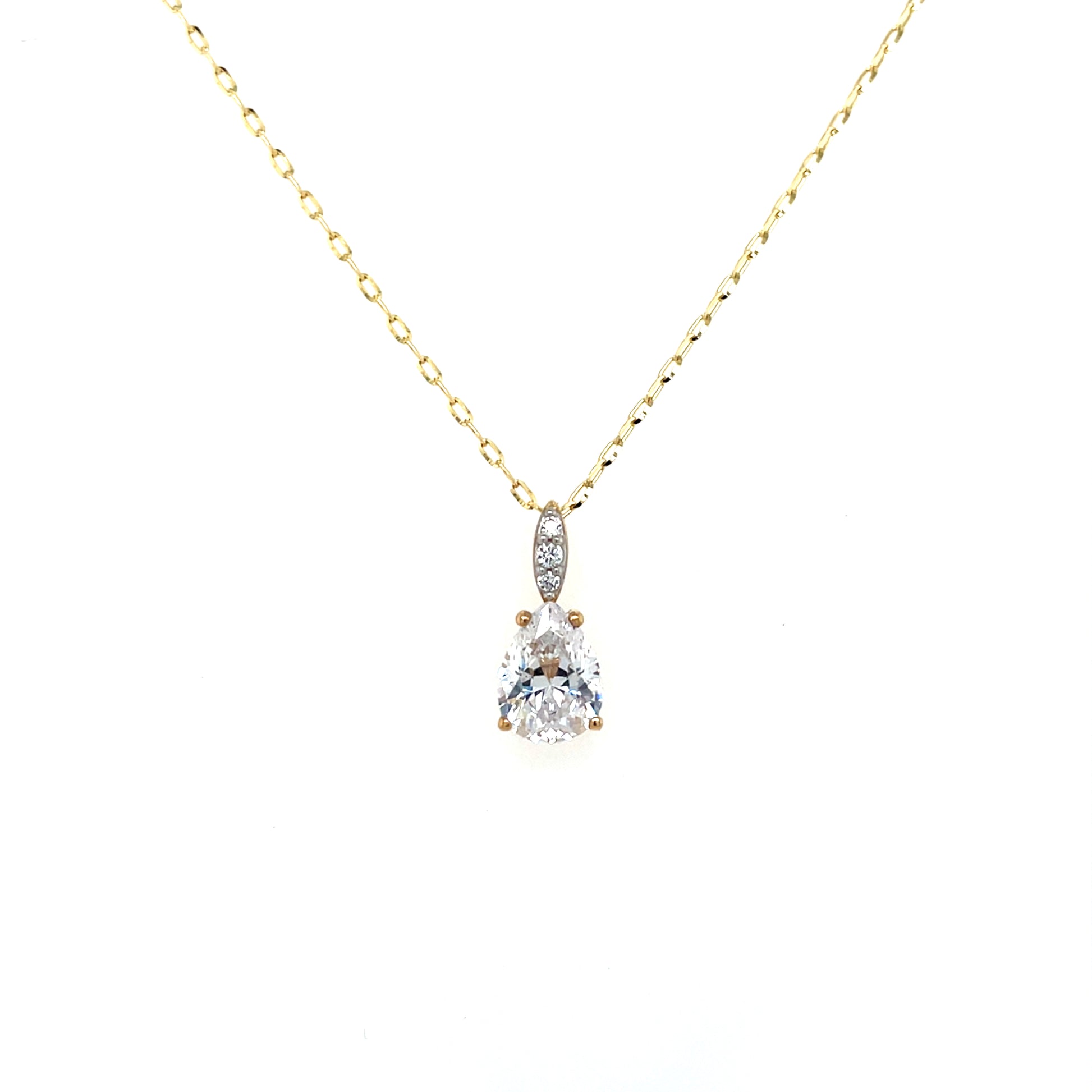 9ct Gold CZ Teardrop Pendant on 18 inch chain.