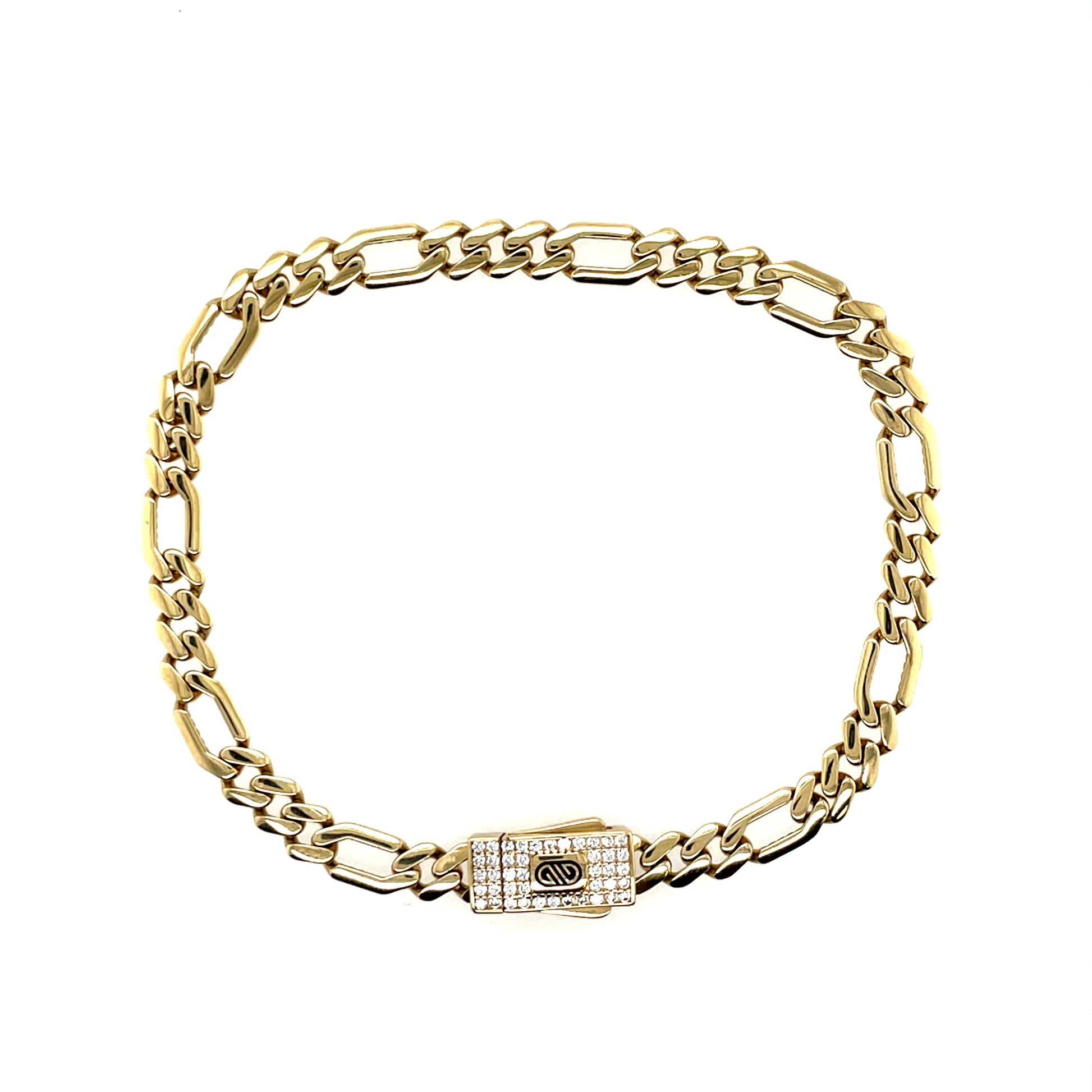 9ct Gold Figaro Bracelet CZ Clasp GB483