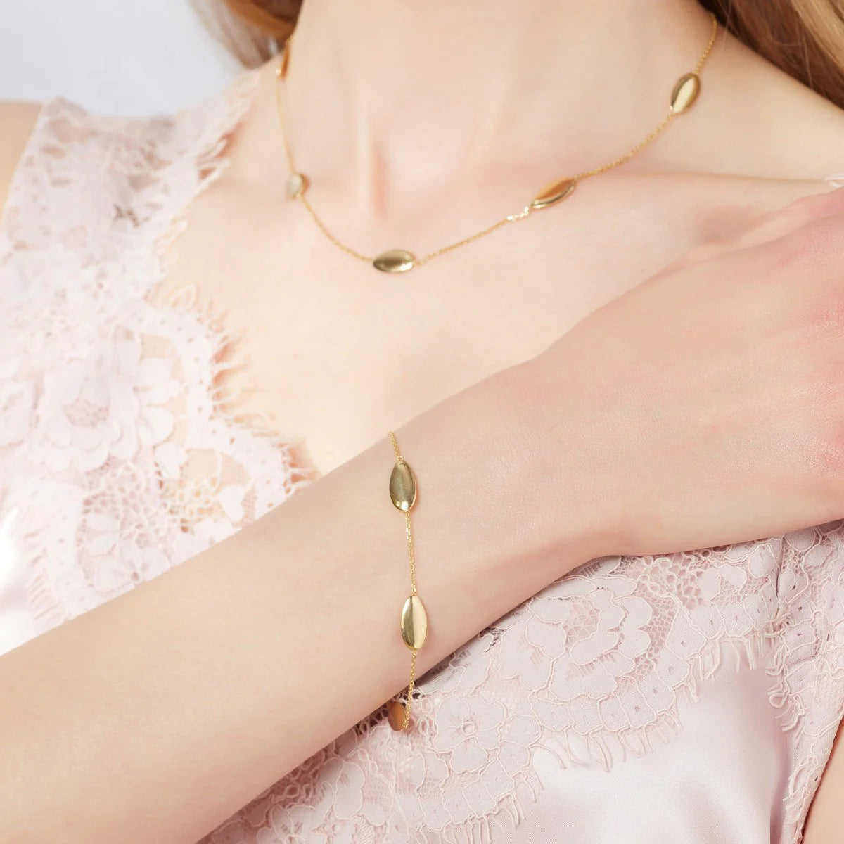 9ct Gold Four Polished Ovals Bracelet, 18/19cm