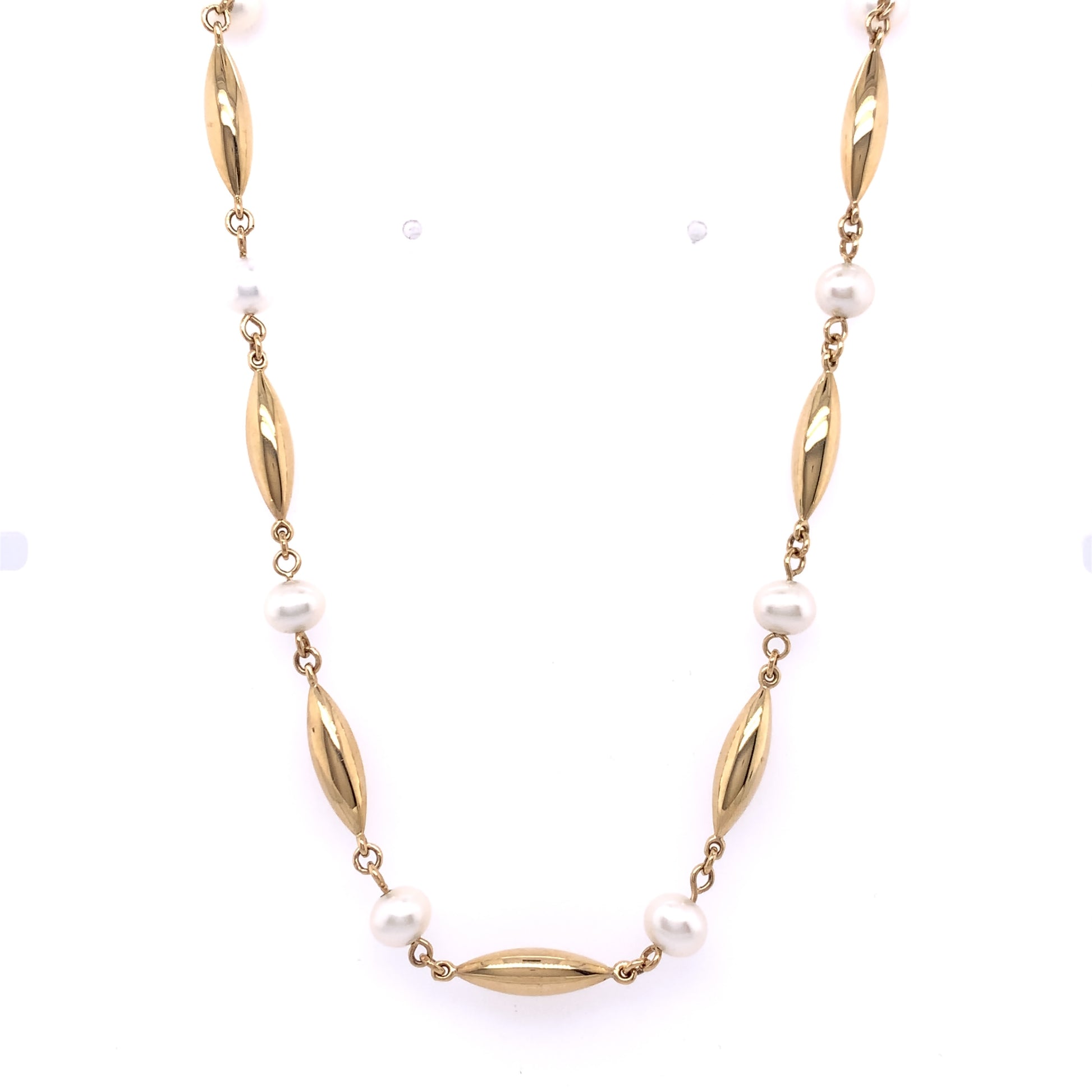 9ct Gold Freshwater Pearl & Bar Necklet.