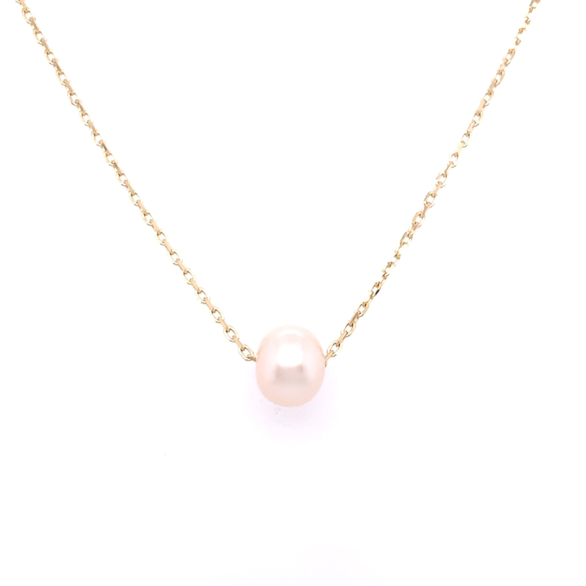 9ct Gold 7mm Freshwater Pearl Slider Pendant on 16 inch chain.