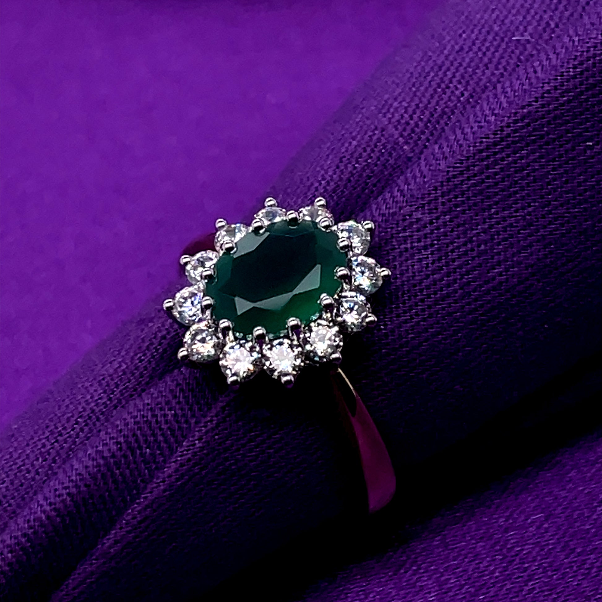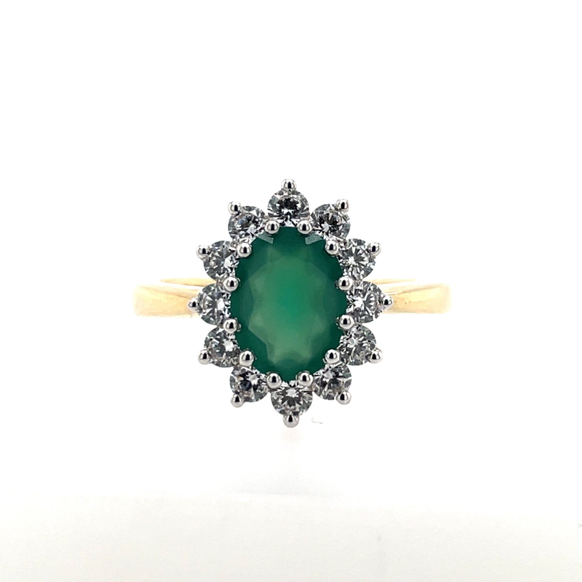 9ct Gold Green Agate & CZ Cluster Ring GRE080