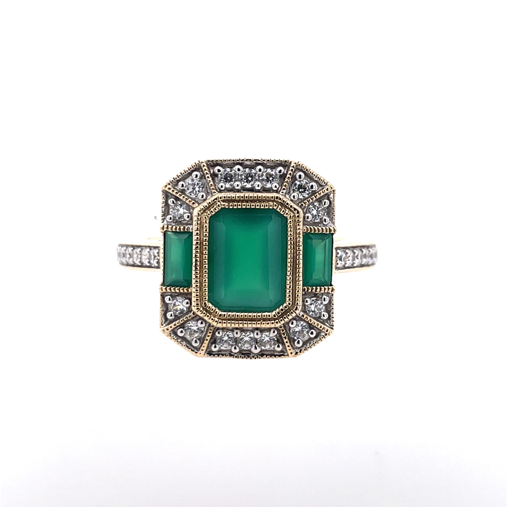 9ct Gold Green Agate & CZ Deco Style Ring GRE131