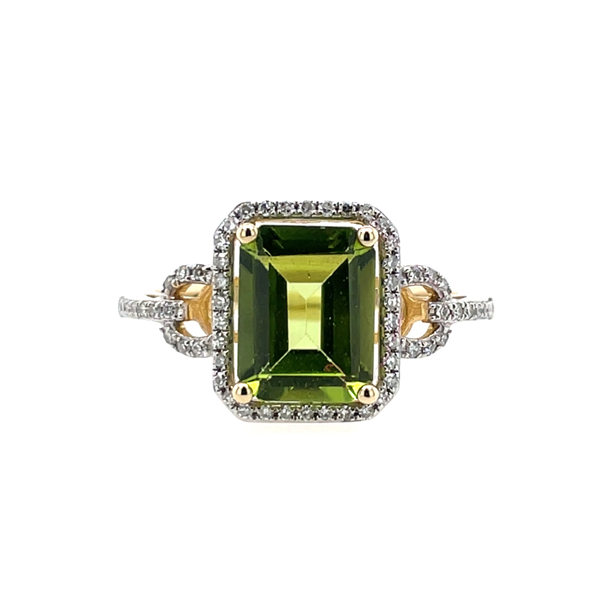 Peridot 9 x 7mm, diamonds 0.18ct.