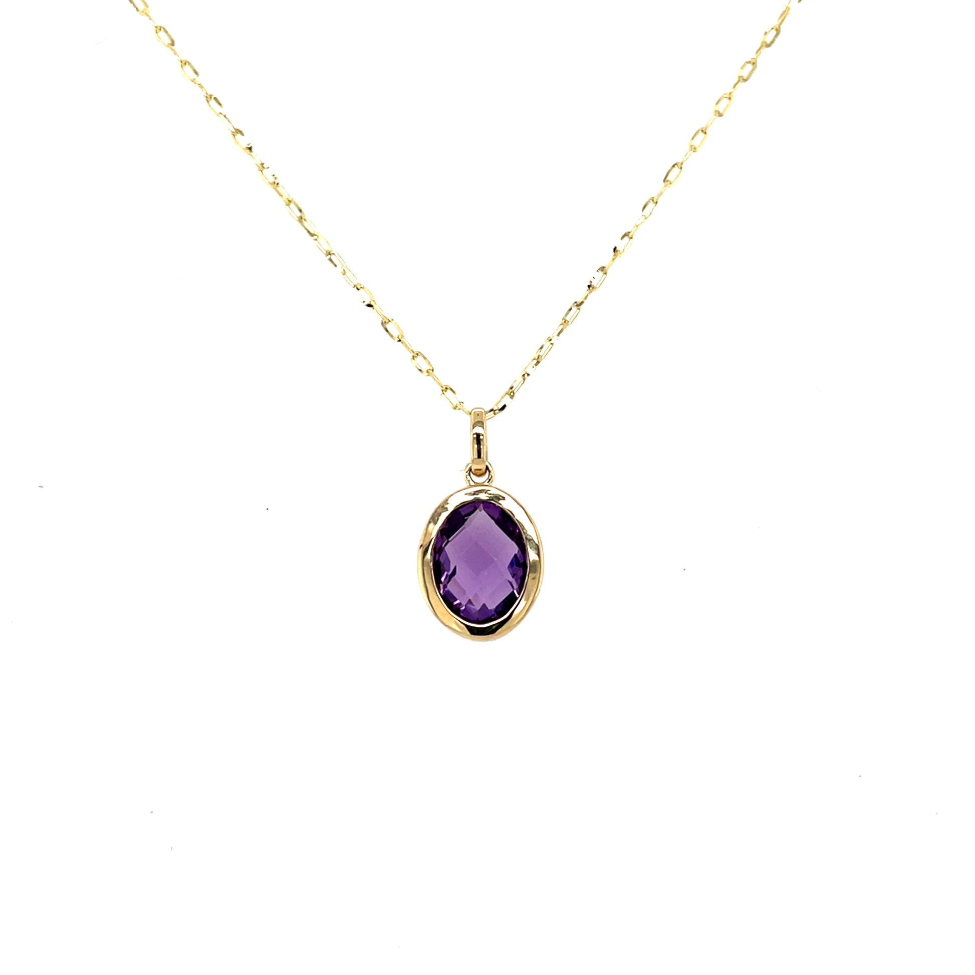 9ct Gold Real Amethyst Oval Pendant GPX203
