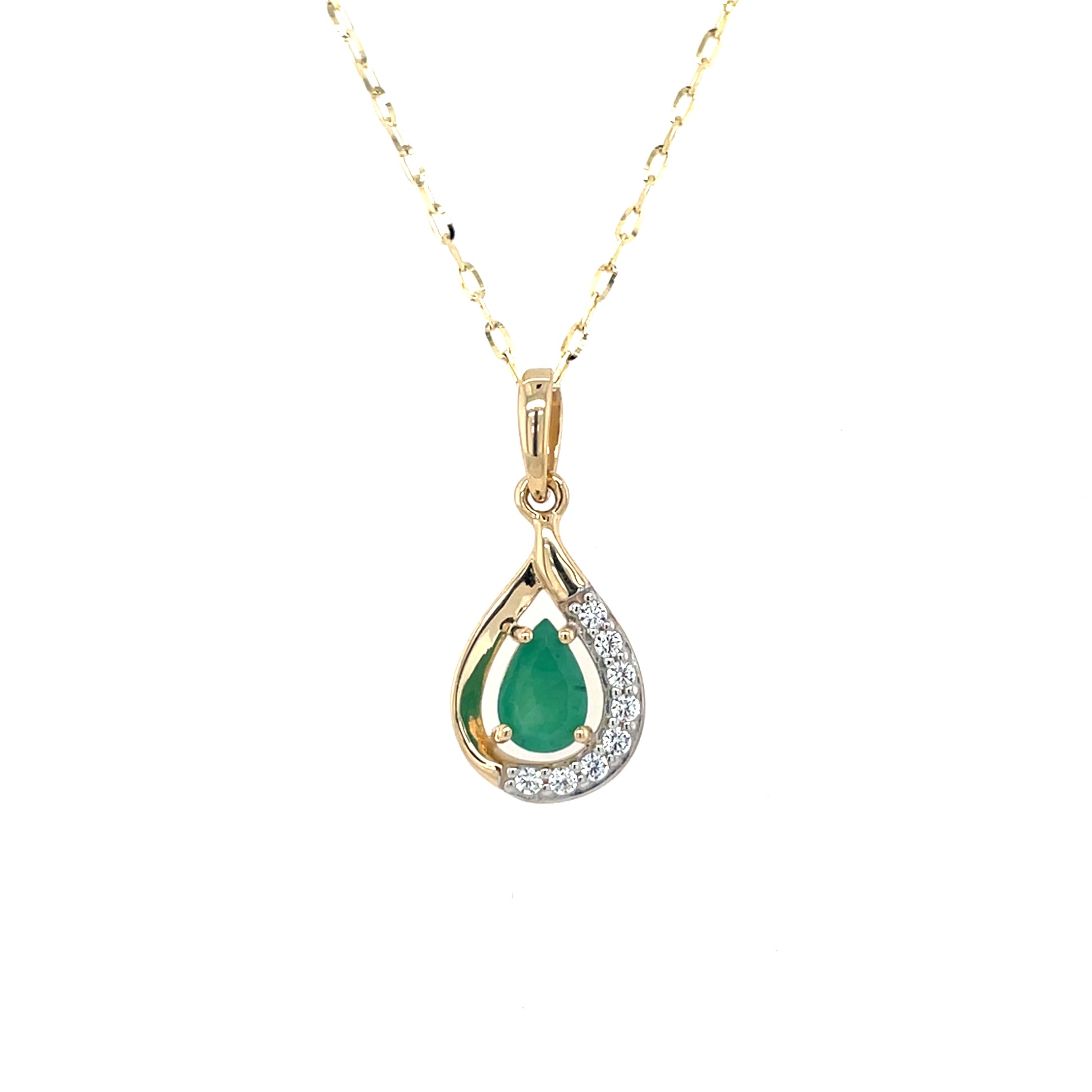 9ct Gold Real Emerald & CZ Teardrop Pendant GPE50