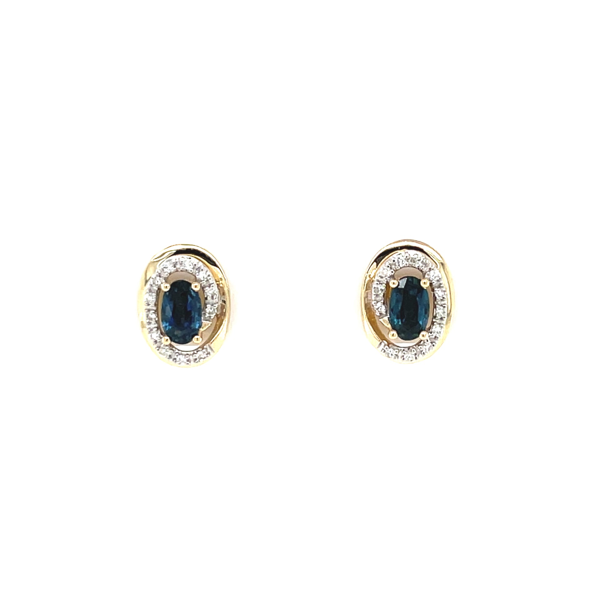 9ct Gold Real Sapphire & Diamond Stud Earrings GES116