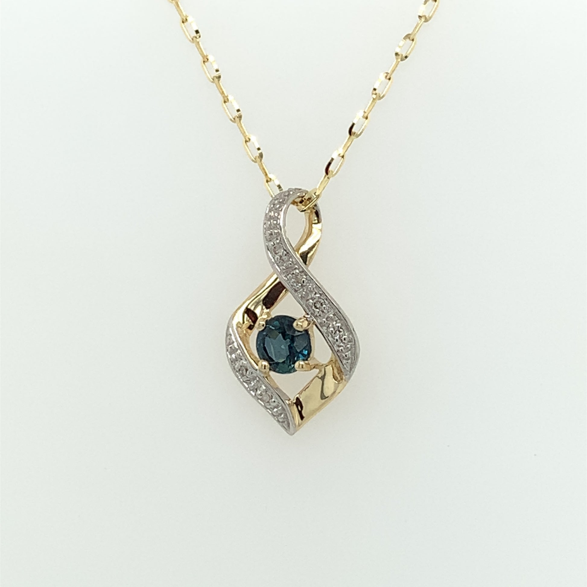 9ct Gold Real Sapphire & Diamond Twist Loop Pendant GPS75