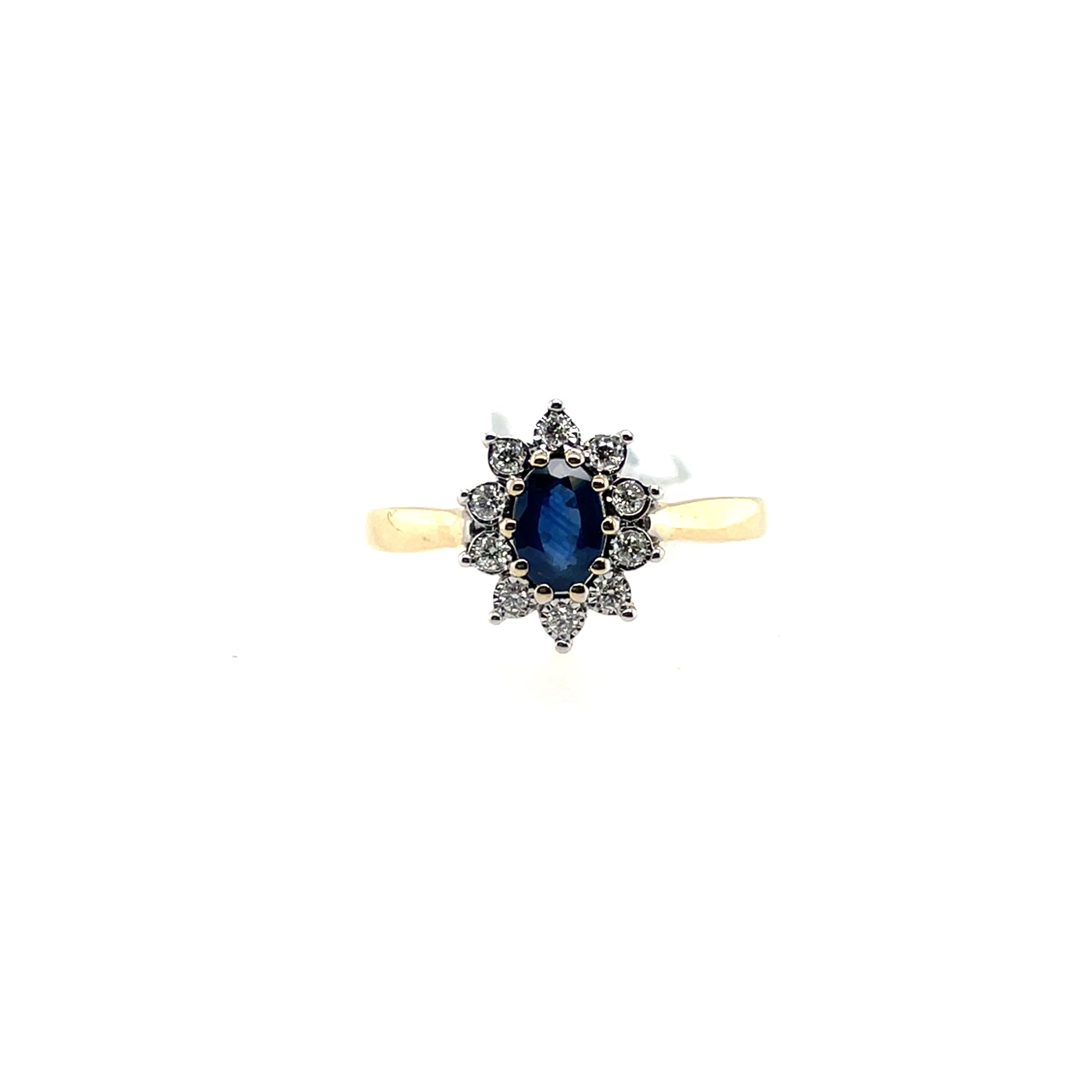9ct Gold Real Sapphire & Diamond Cluster Ring GRS288
