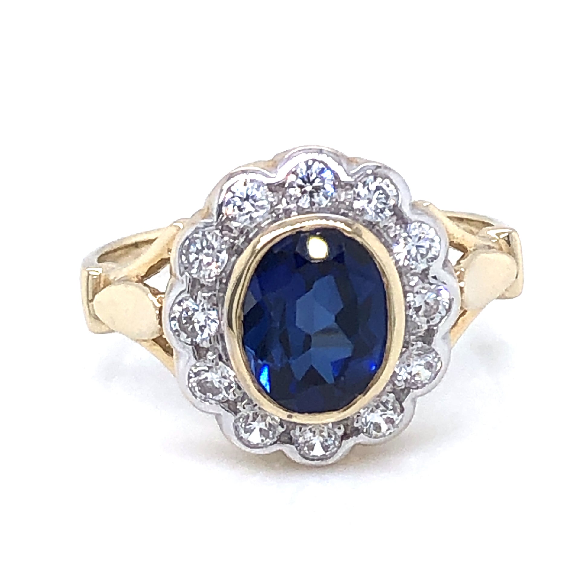 9ct Gold Synthetic Sapphire CZ Flower Cluster Ring GRS245