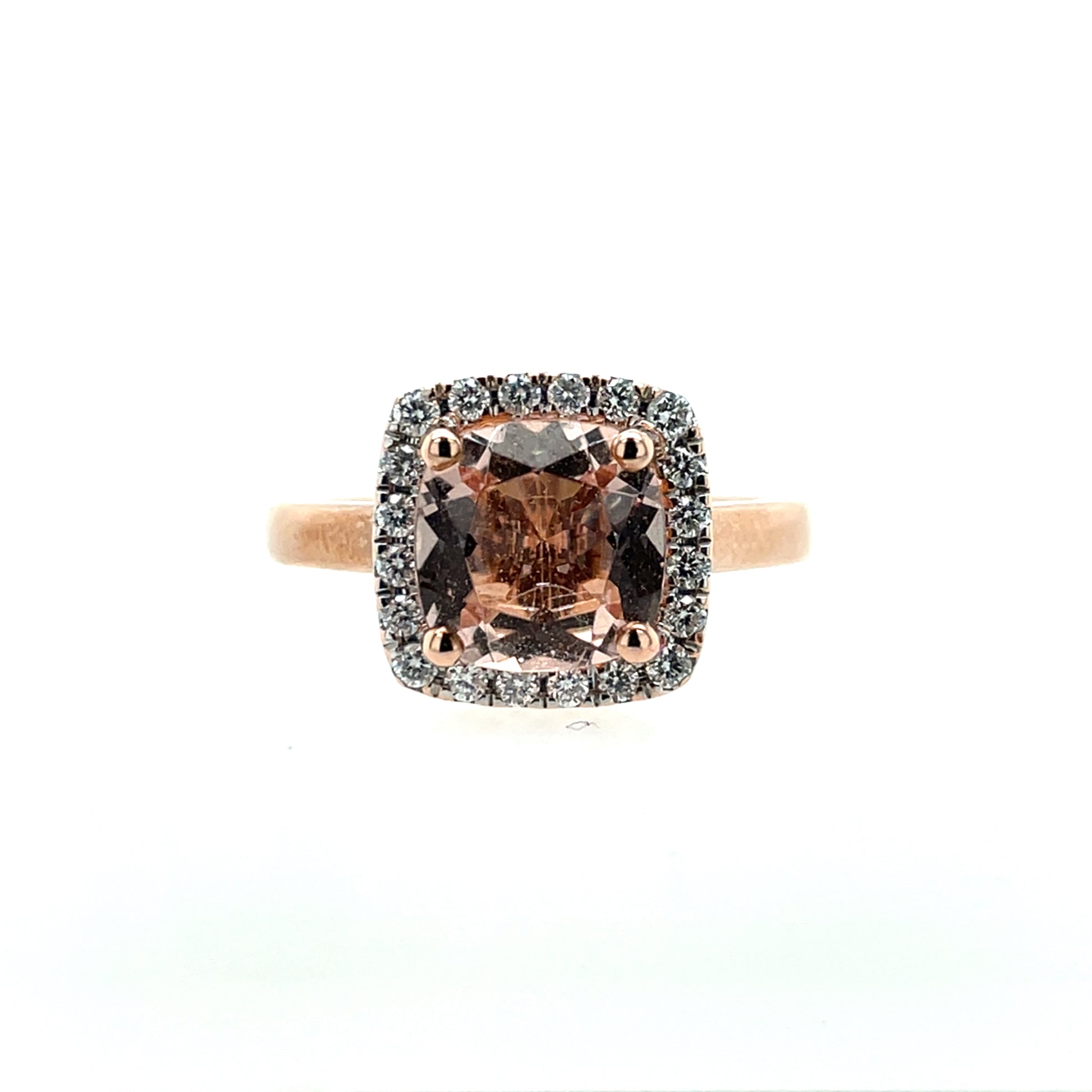 9ct Rose Gold Morganite & Diamond Cushion Halo Ring GRX274