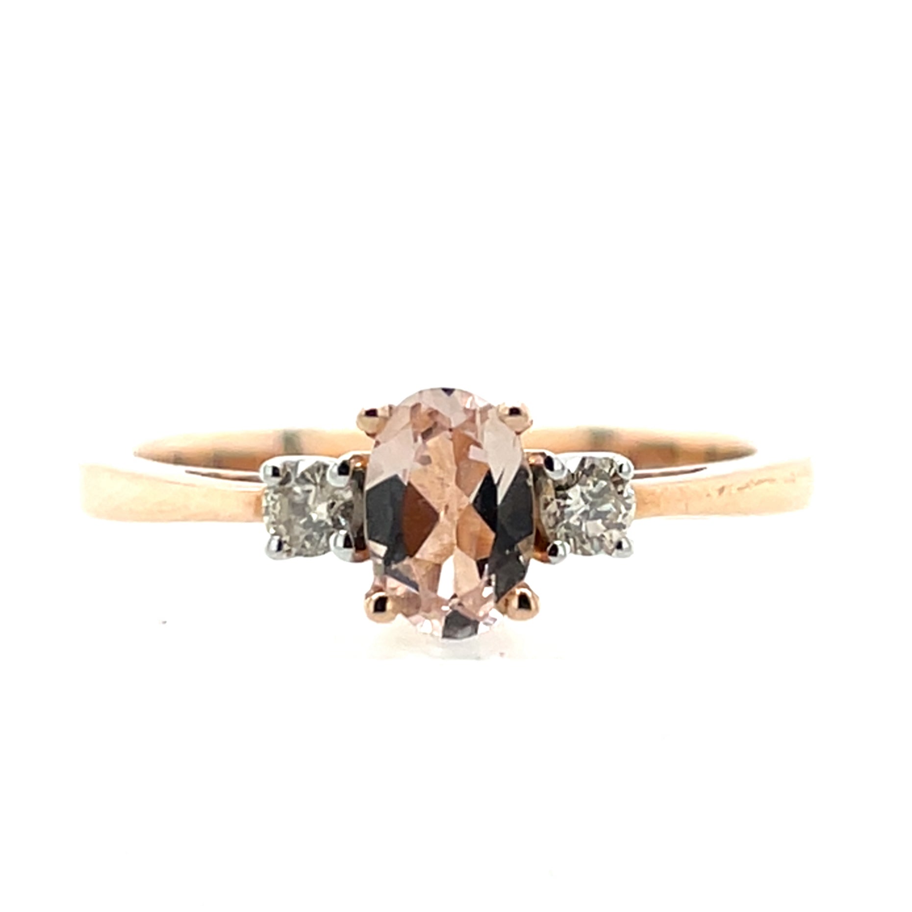 9ct Rose Gold Morganite & Diamond Ring GRX267