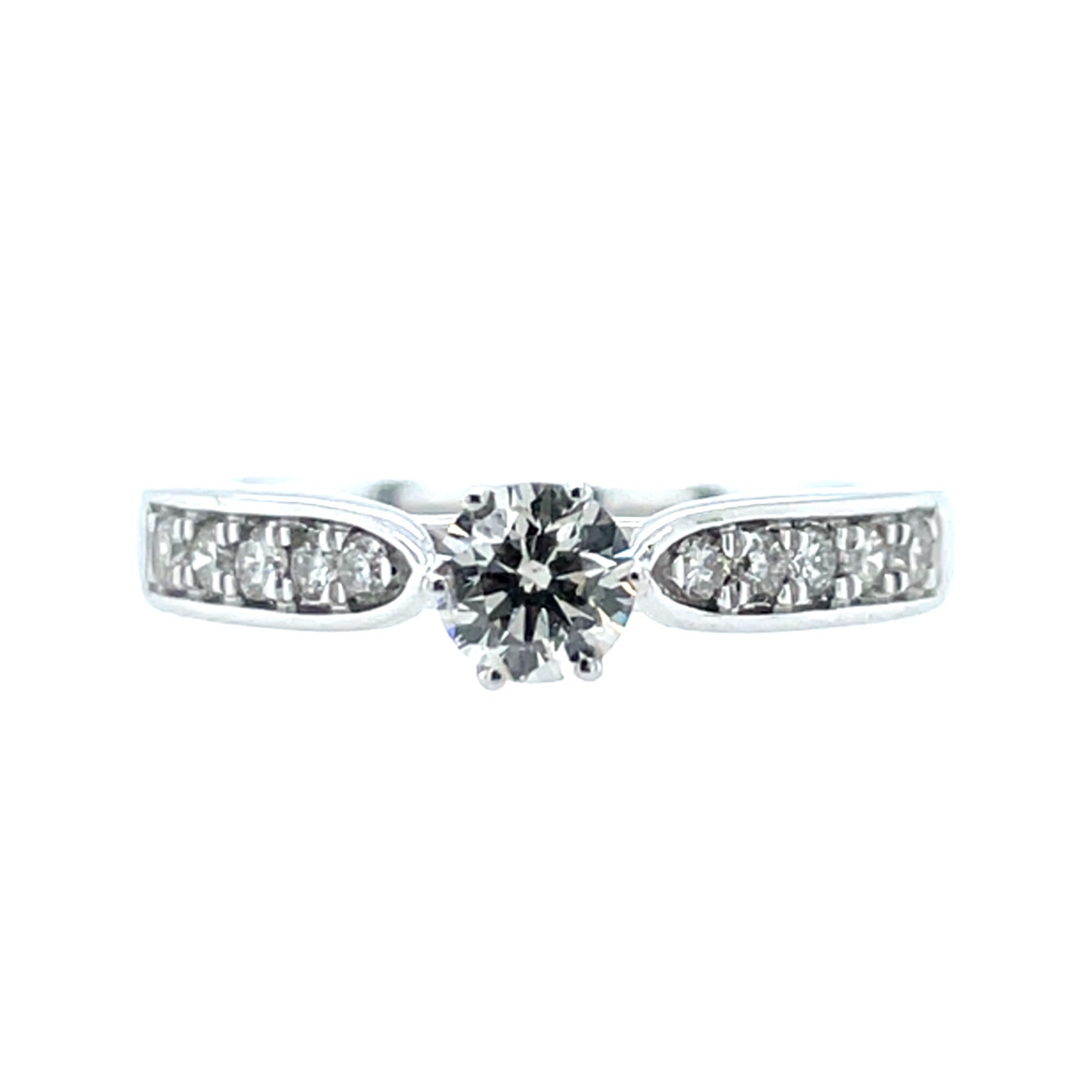 9ct White Gold 0.50ct Diamond Solitaire Ring, with pavé-set shoulders.