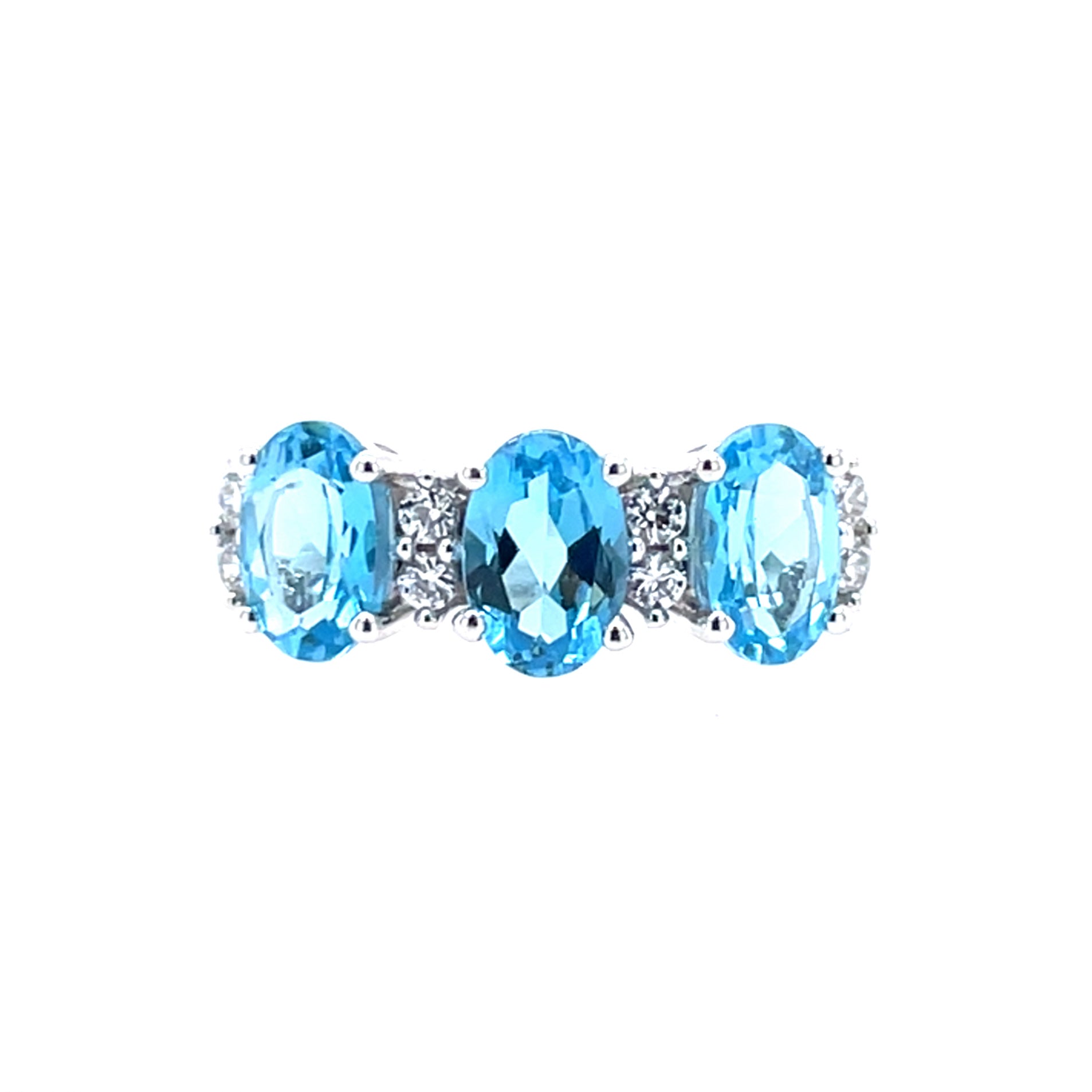 9ct White Gold Blue Topaz & CZ Trilogy Ring WRZ062