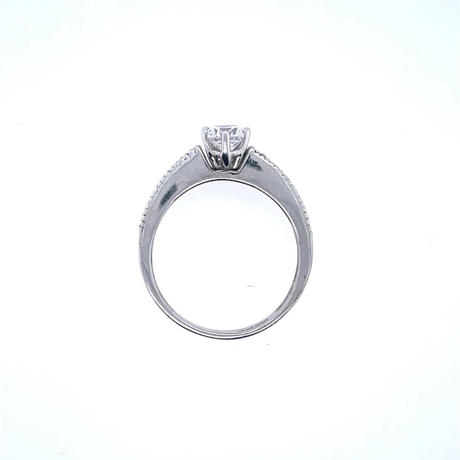 9ct White Gold Classic CZ Solitaire Ring, six-claw setting with baguette-set shoulders.