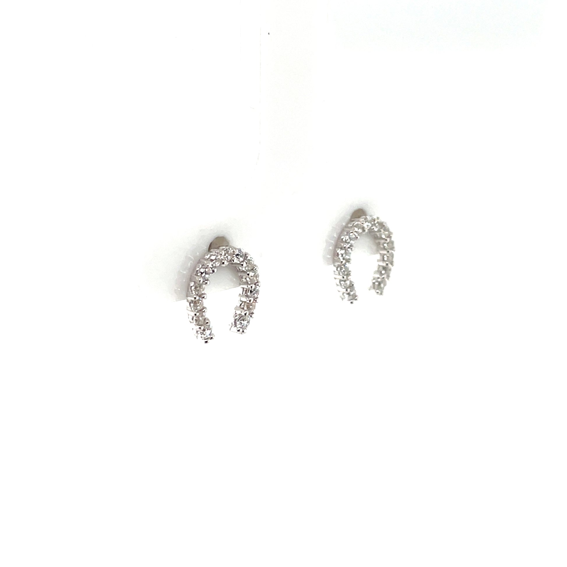 9ct White Gold CZ Horseshoe Stud Earrings WEZ072