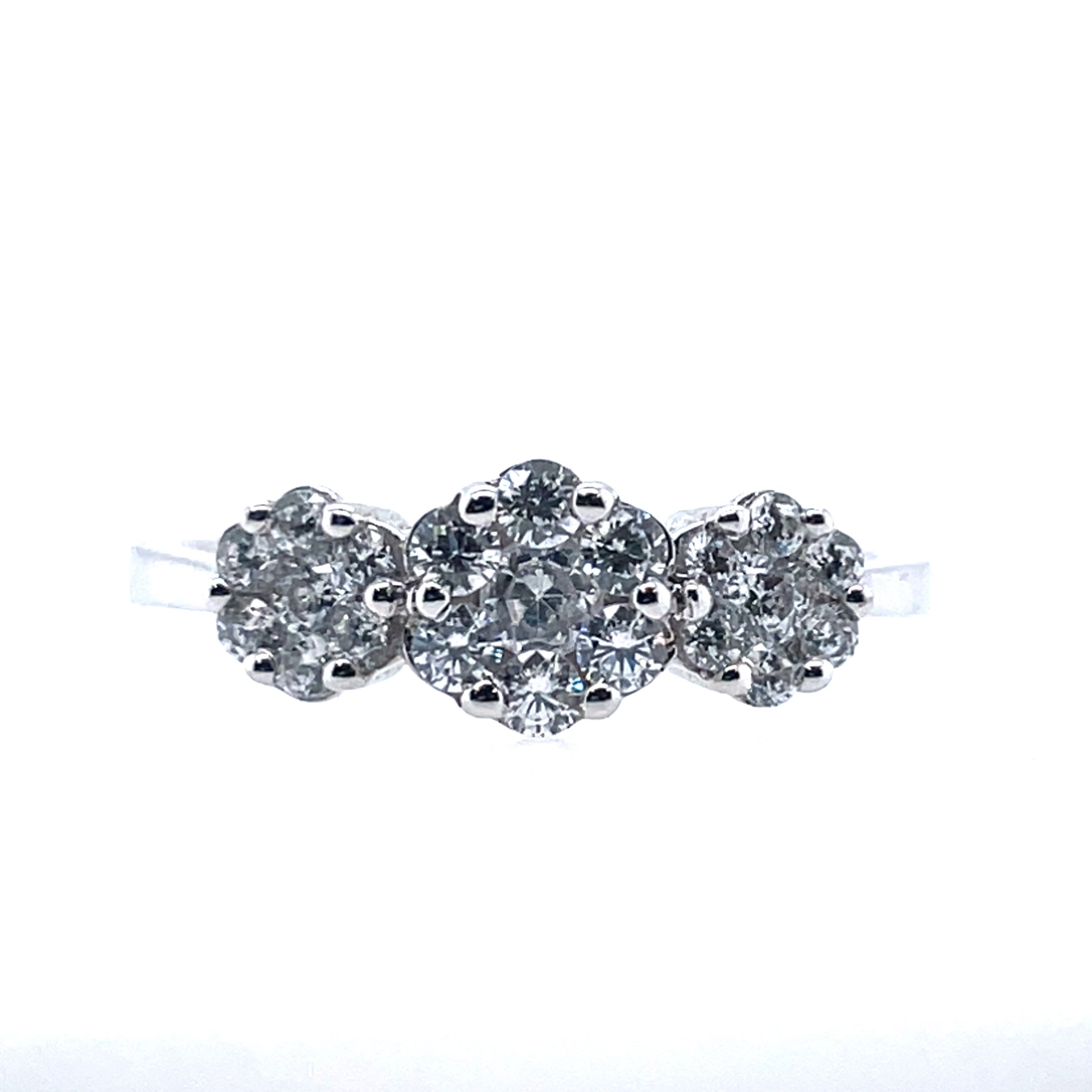 9ct White Gold CZ Trilogy Cluster Ring