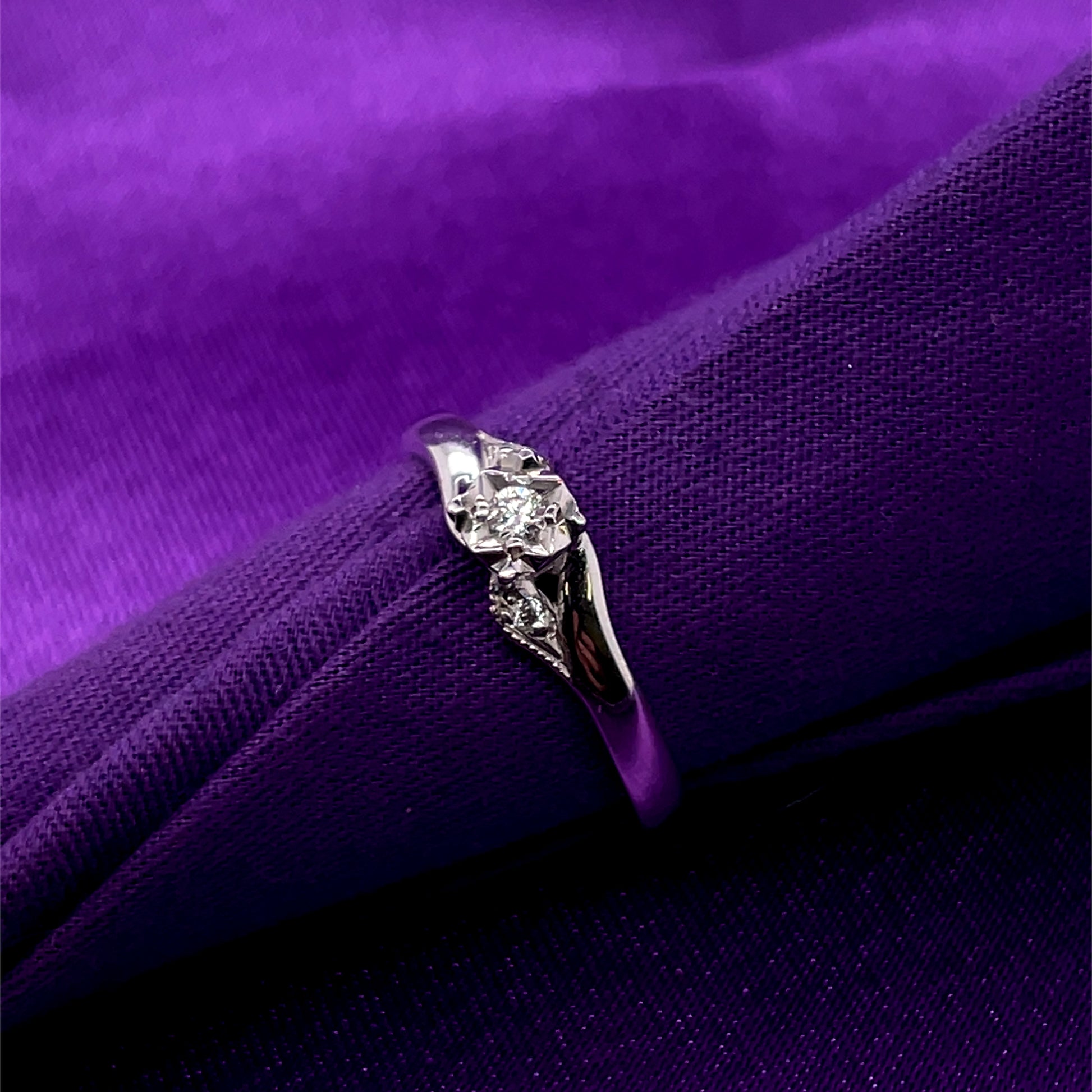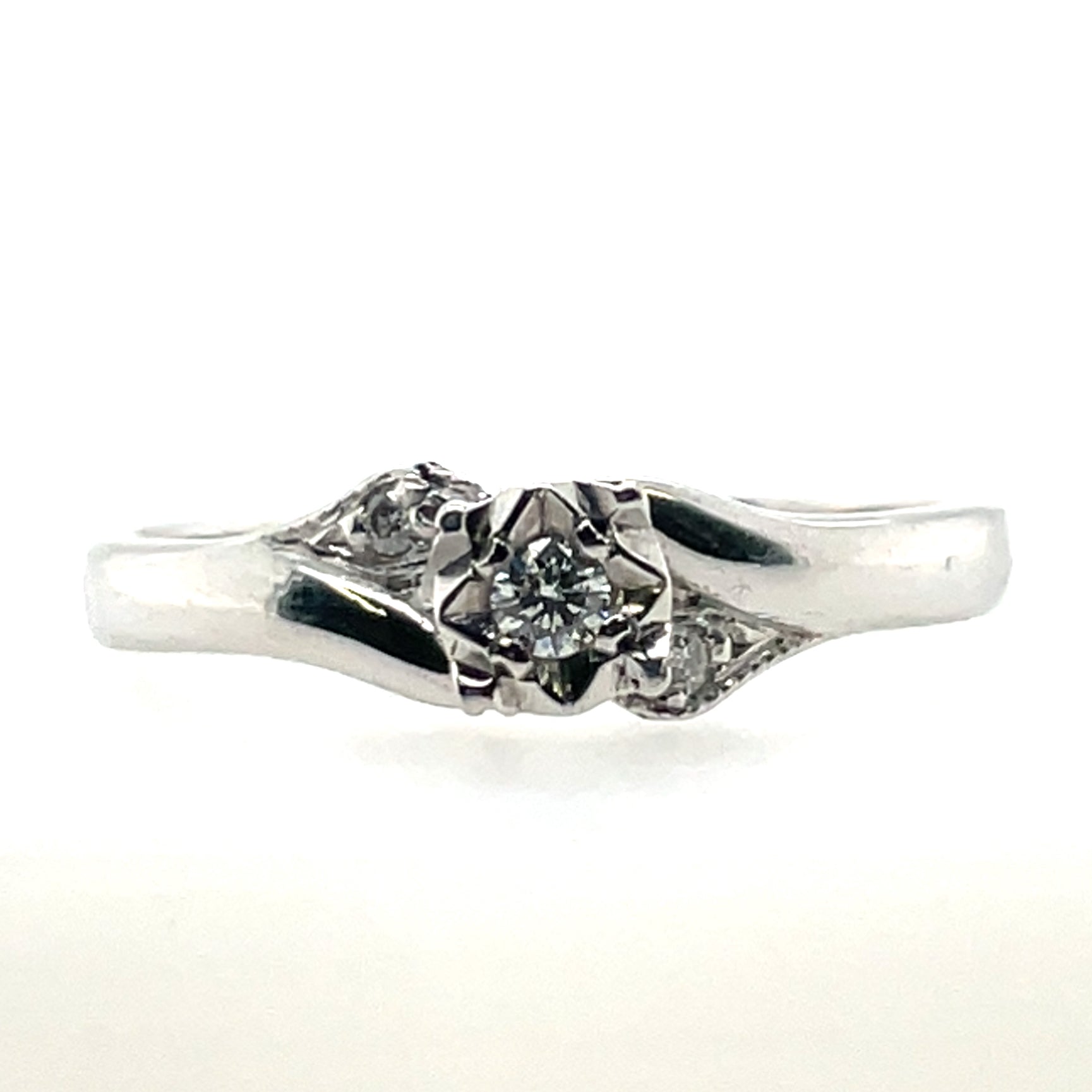 9ct White Gold Diamond 0.076ct Crossover Solitaire Ring, with polished shoulders.