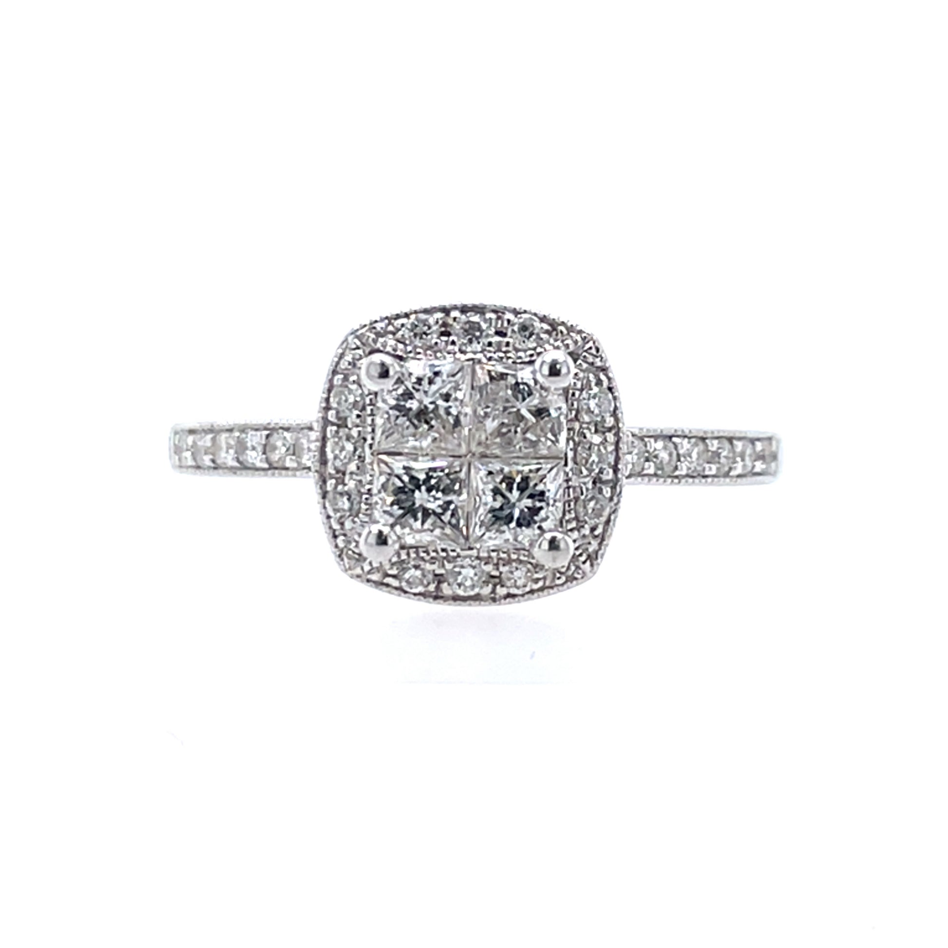 9ct White Gold 0.70ct Diamond Princess Halo Ring Z067