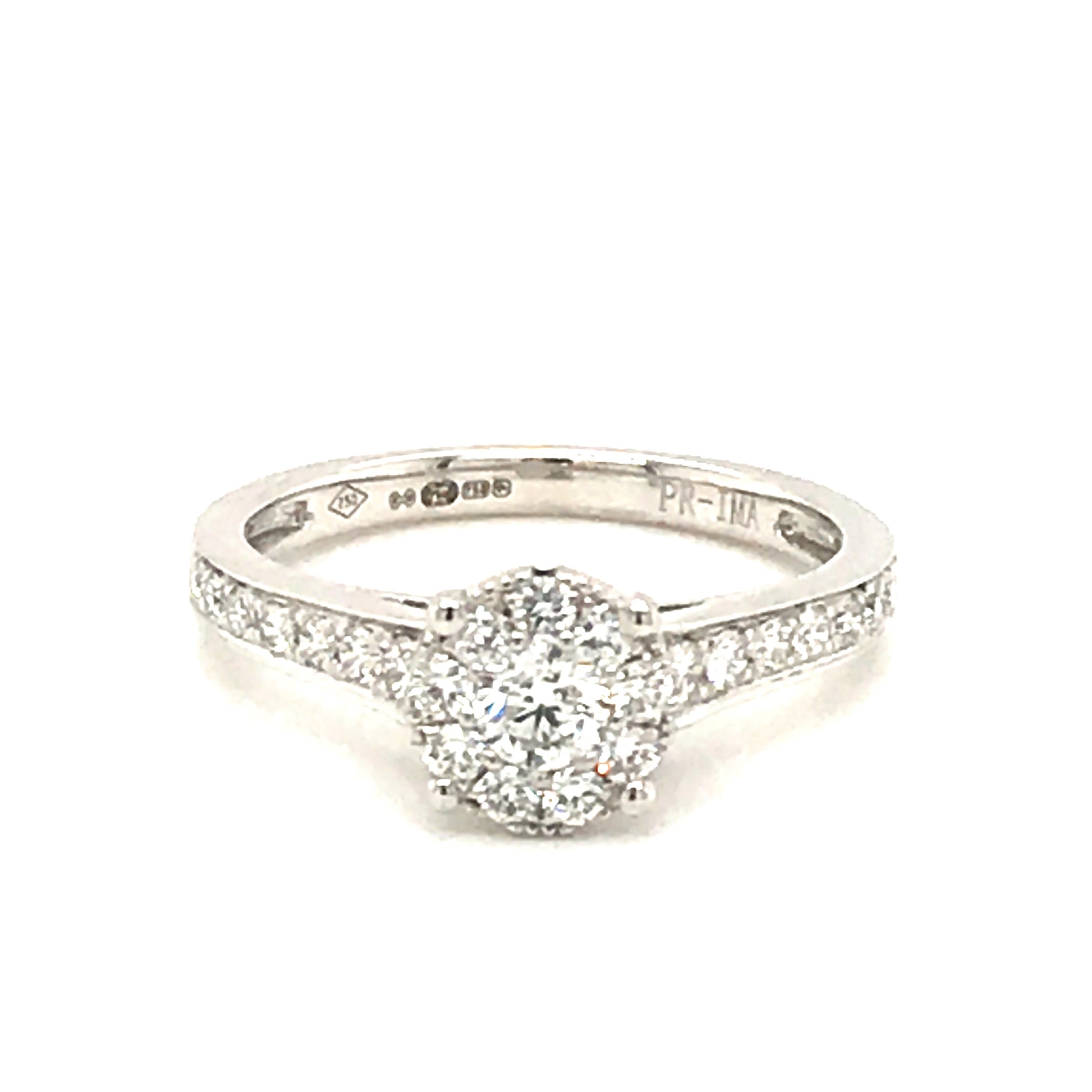 9ct White Gold Diamond Halo 0.35ct Engagement Ring Z178