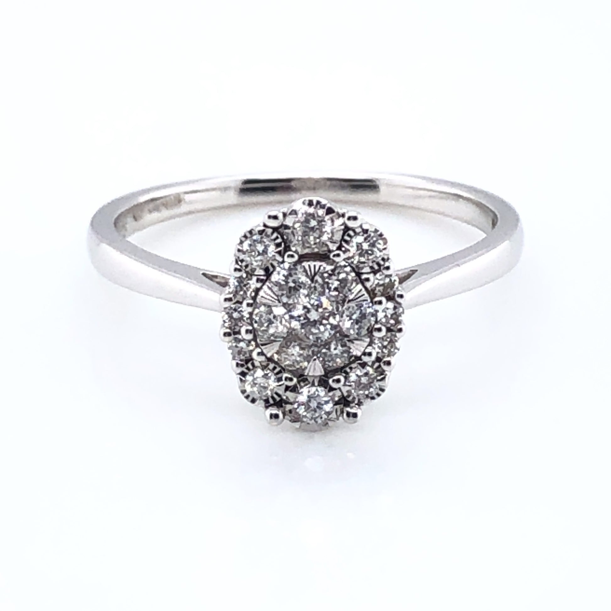 9ct White Gold Diamond Illusion Oval Halo Ring
